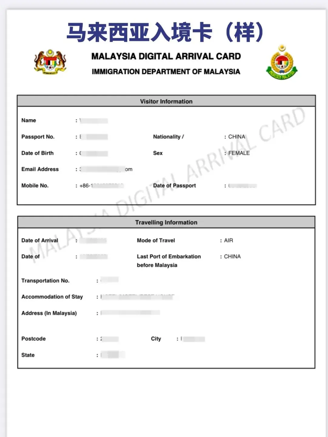 中国护照持有人可免签入境马来西亚30天,无需办理签证,但是入境前3天内需填写电子入境卡MDAC。