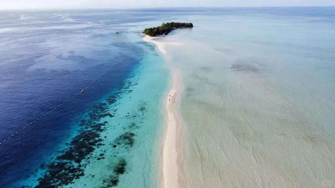 汀巴汀巴岛很小,岛屿狭长,拖着长长的尾巴,在海水里若隐若现。