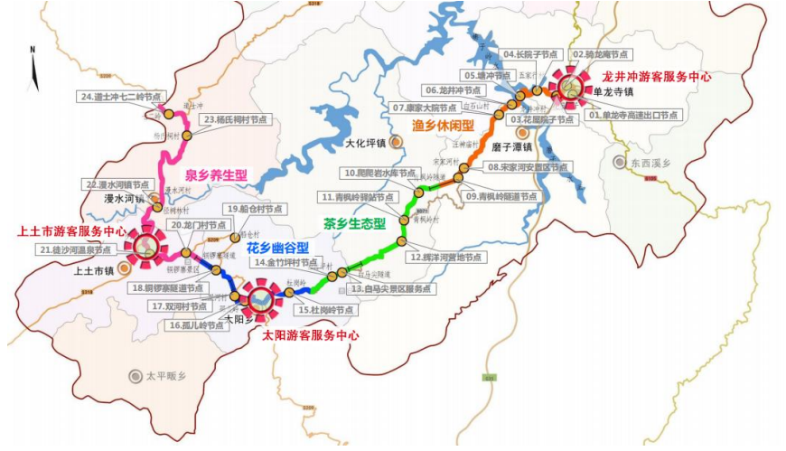 风景道沿线周边配套建设了1个全域旅游集散中心,18个游客服务中心,81座A级旅游厕所,108块旅游标识标牌,4个房车营地,改造升级500家民宿、农家乐,推动全域旅游规范发展。