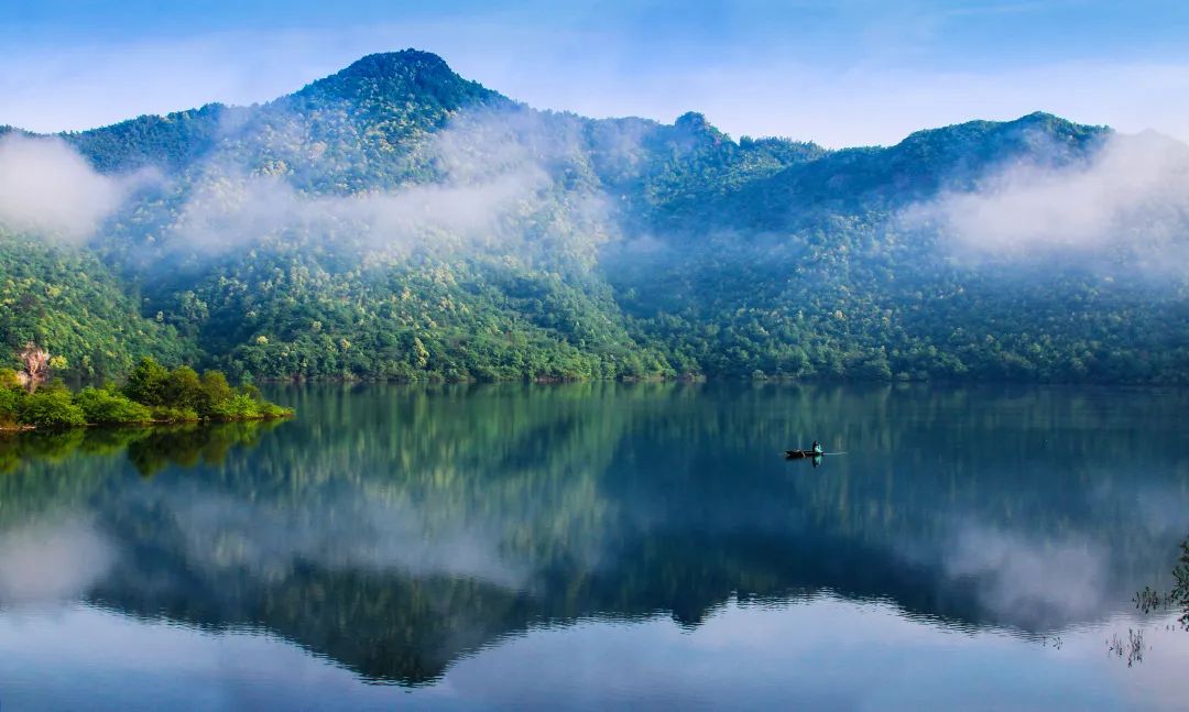 青龙湾生态旅游区。这里的水质清冽,仿佛经过过滤一般纯净。山与水相互环绕,碧水与青山相映成趣,这里的景色让人心旷神怡,仿佛走进了一幅山水画中。