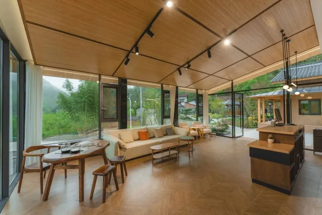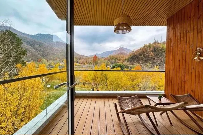 杏林山居民宿位于留坝县玉皇庙镇狮子崖村。整栋山居建筑掩映在银杏林中,背依满山青翠,面迎溪水潺潺,与秦岭那条闻名遐迩的“最美乡村公路”只有一水之隔。民宿专门铺设的巨大草坪,一览风景之余,可以在此举办露营、下午茶,尽享和大自然贴贴的幸福。