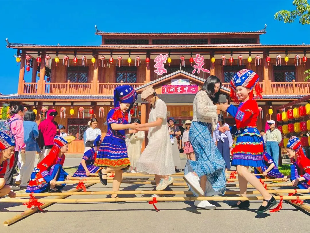 游客可自行参与舞蹈,跳起竹竿舞,祈愿来年节节高升(朋友们参与舞蹈要注意安全呐~)。