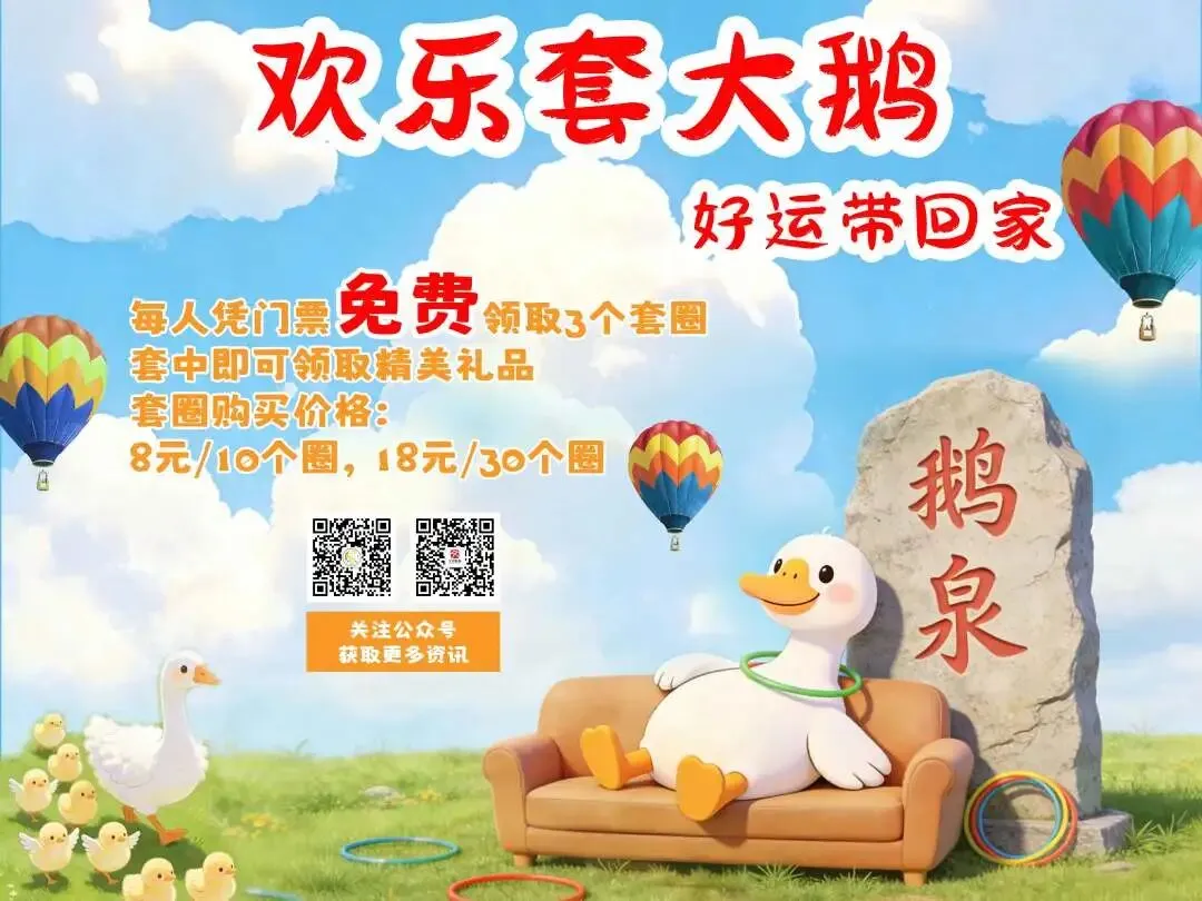 鹅仙降福贺新岁,红包派送乐团圆,活动期间,“鹅仙”将会沿鹅泉景区主步道巡游,沿途向游客随机派发迷你红包,红包内容惊喜多多,遇到的游客不要错过哟~