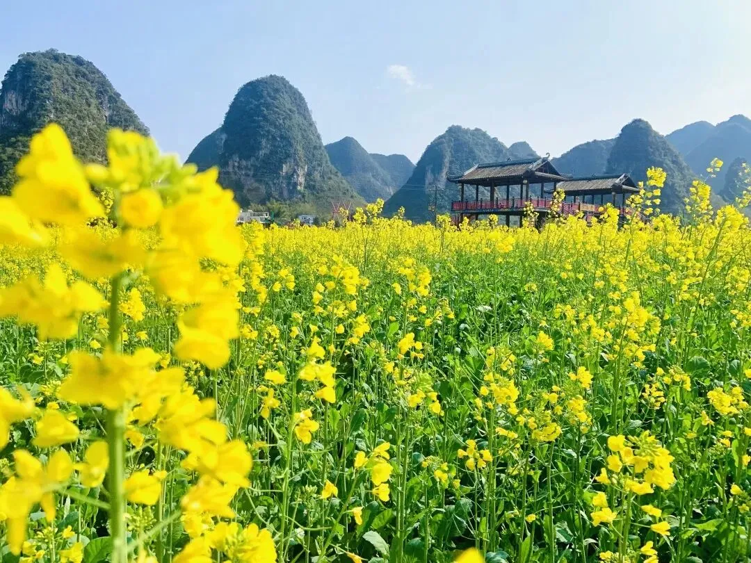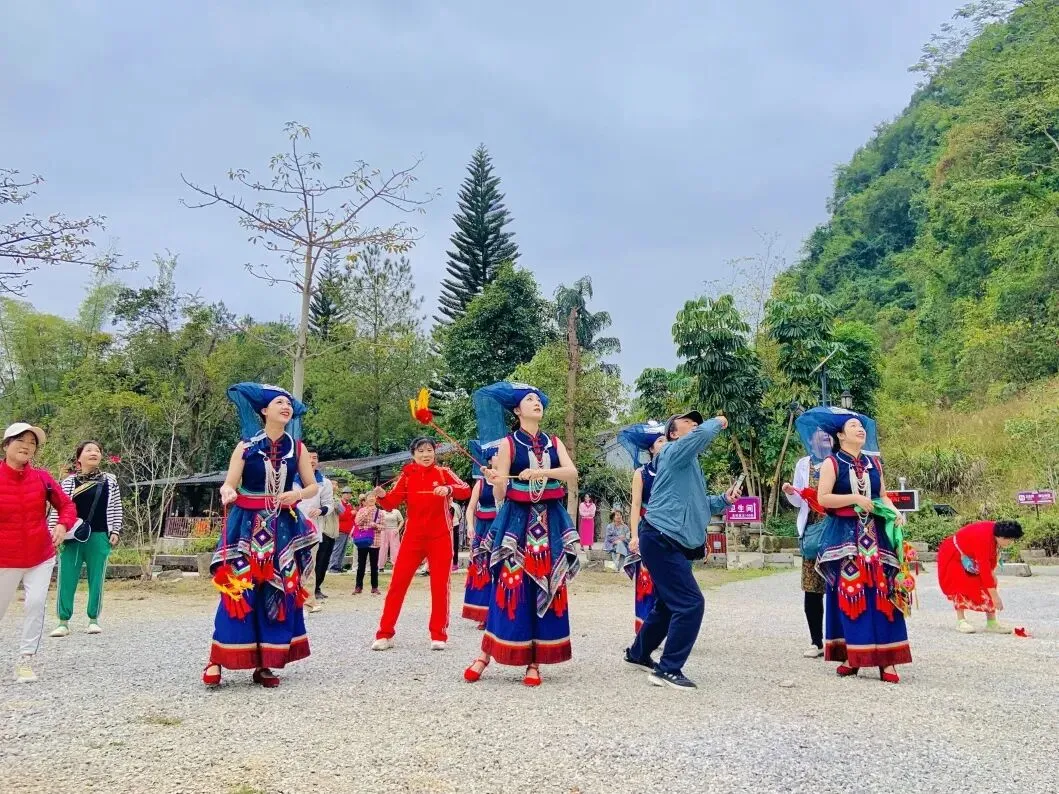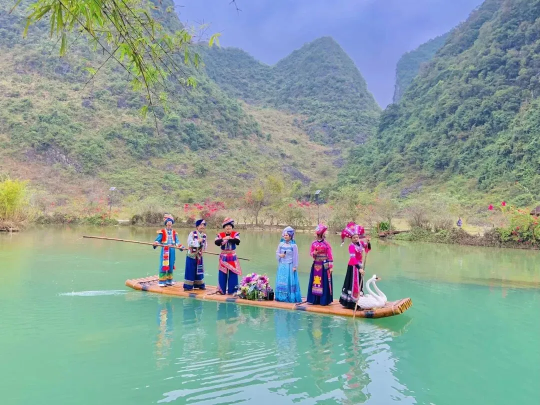 连绵峰林为幕,清澈泉水和声。壮族阿哥阿妹将嘹亮的歌声洒向山野,在天地间自由回荡。带上野餐垫,与家人好友围坐,在暖阳下,在微风里,感受春日里最动人的旋律。