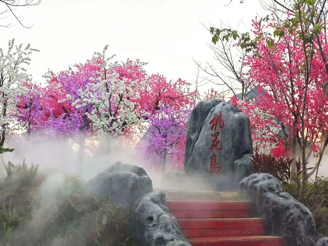 鹅泉景区新增的打卡点——桃花岛,更是为景区增添了几分浪漫的气息。桃花岛上,粉色、白色、紫色的桃花如霞似锦,与周围的山水相互映衬,构成了一幅绝美的画卷,拍照打卡超级出片。