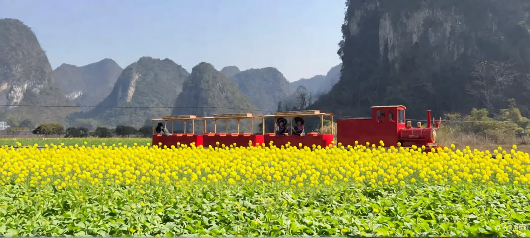 让风引路,让花作轨,旧州花海小火车穿过翻涌的金色波浪,这趟慢行的列车,不追赶时间,只收集春天。