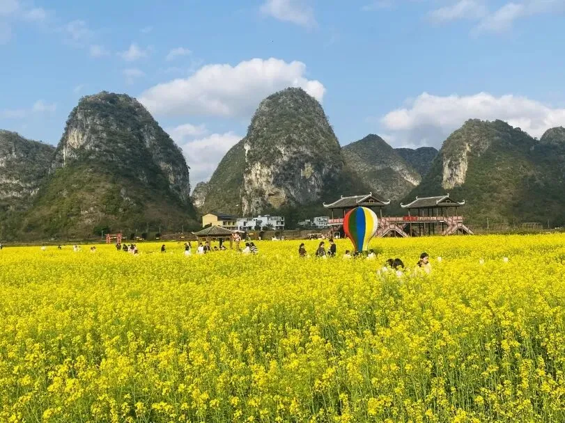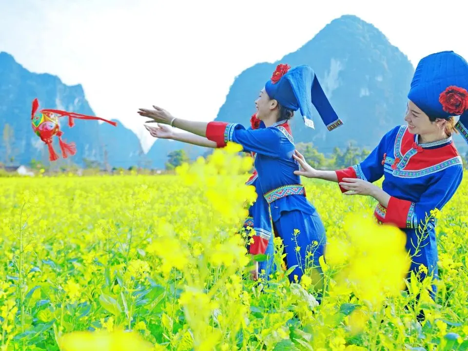 在微信、抖音、微博、小红书等平台带话题“#花海承文脉·乐动贺新春·畅游靖西”分享游玩图文或视频,定位鹅泉、旧州、渠洋湖三个景区任意一个,转评获赞排名前三者(集赞截止时间:2月23日24:00前),均可获得“马年畅游靖西礼品包”1份,礼品包含:旧州民宿普通标间1间1晚(2026年12月31日前非节假日可用)、2人份(鹅泉、旧州、渠洋湖)景区游览券各1张、精美绣球2个。