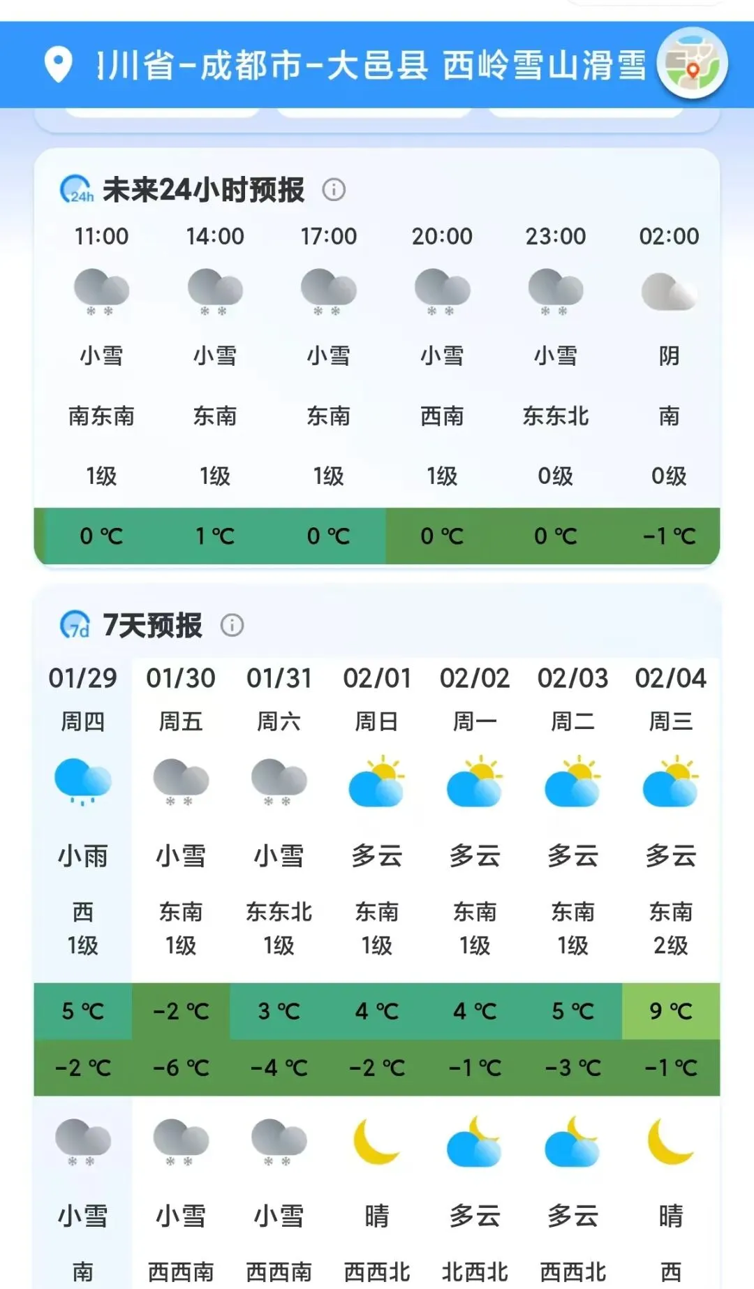西岭雪山景区1月30日(周五)气象预报01