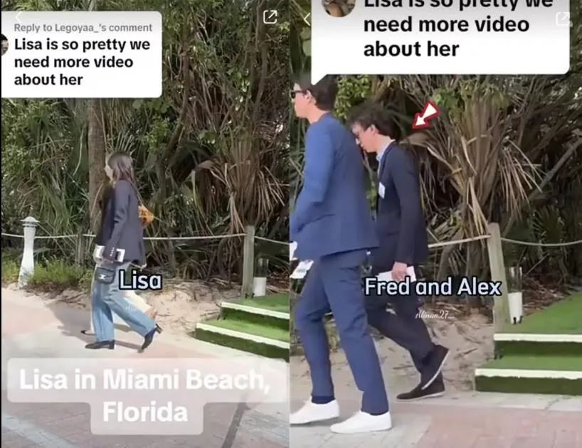 根据外媒报道,Lisa和Frédéric Arnault被网友拍到去迈阿密海滩度假,两人身穿西装状态松弛.据偶遇者透露,此次同行还有Frédéric Arnault的二哥Alexandre Arnault和二嫂Géraldine Guyot。