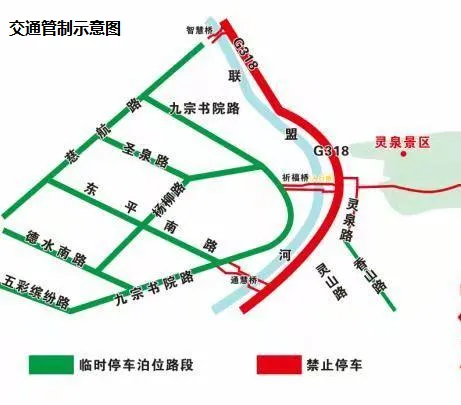1.春节期间灵泉景区周围道路将实行交通管制措施,车辆无法驶入,景区在灵泉大道、祈福桥、仁里三个方向设有入口,请各位游客提前规划好路线。