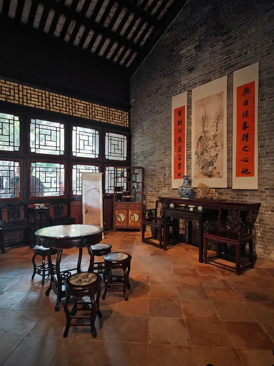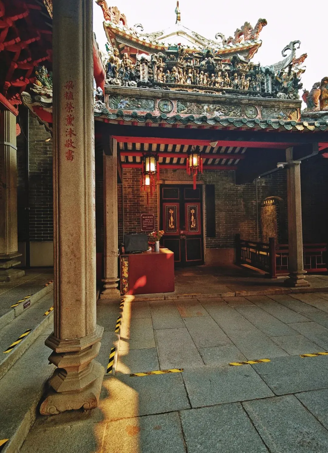 祖庙进门左手边就是一代宗师叶问的纪念馆“叶问堂”,大家在堂前行了抱拳礼后,过了过招,😂赵哥自编自导自演,拍了短视频。照片上的游客都去哪儿了?被我一拳🤜🏻👊🏻👋🏻推开(手动消除)了!