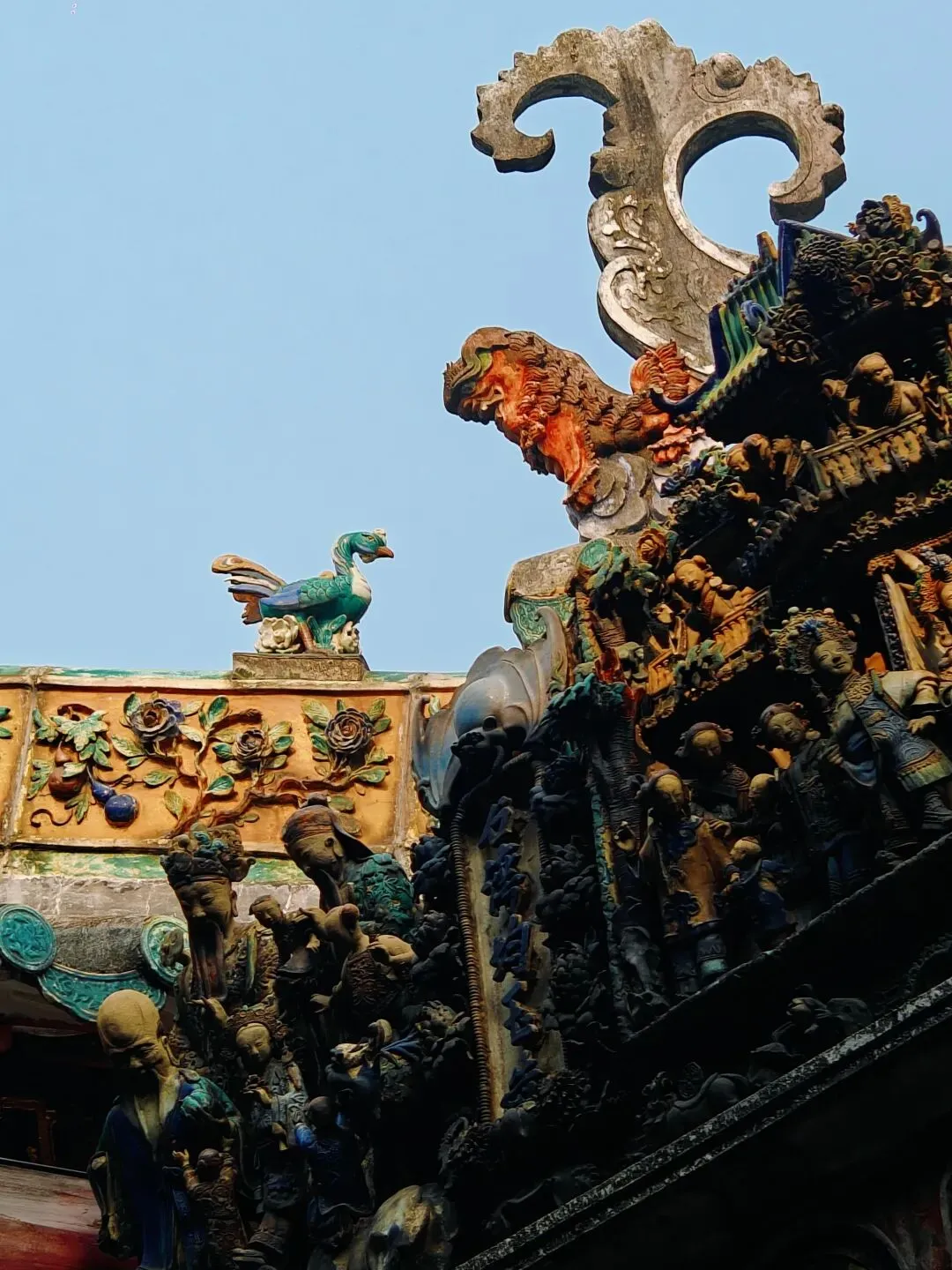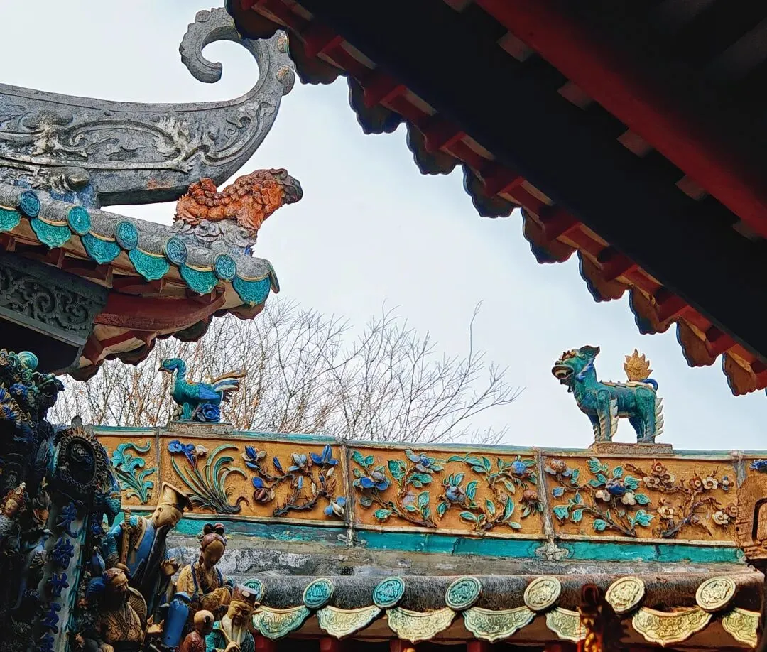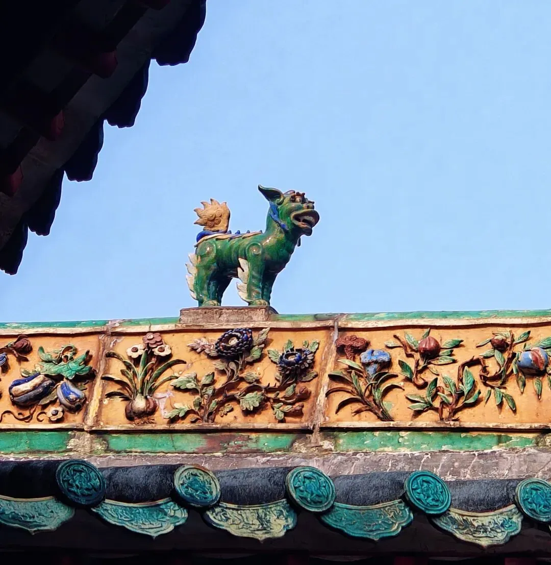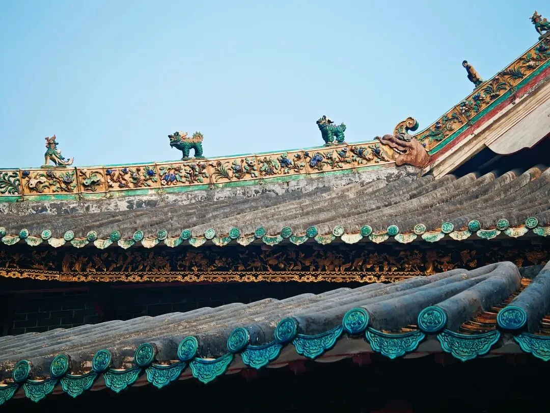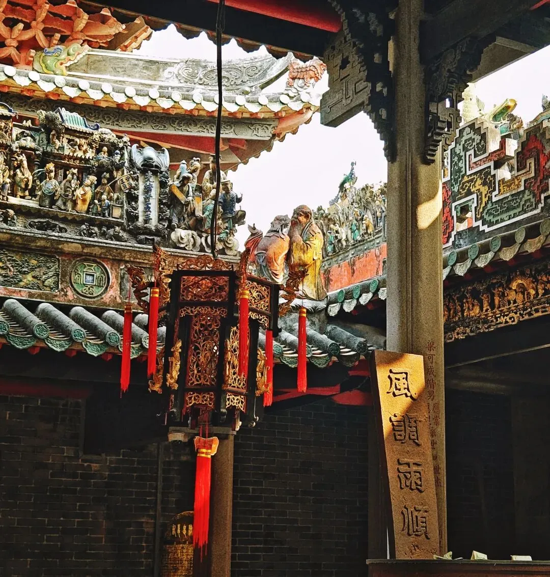 佛山祖庙,又名“北帝庙”、“灵应祠”,始建于北宋元丰年间,其结构严谨,装饰、陈设大多是本地生产,如石湾的瓦脊陶瓷、墙壁上的砖雕、殿堂里的木雕、以及锦香池中雄踞水面的龟蛇石雕等等。所塑造的各种故事人物、鸟兽花卉等,大都构思新奇,刻画细致。锦香池里的巨大石刻龟蛇,象征着真武大帝的原身,按照惯例,投了纸币许了愿。 喜欢拍瓦脊上的雕塑,色彩丰富,活灵活现。 “佛山祖庙是供奉道教崇信的北方玄天大帝的神庙,名“北帝庙”。之所以称为祖庙、是因为“历岁久远,且为佛山诸庙首”的缘故。同时,因为宋、元以后这里一直是佛山各宗祠公众议事的地方、成为联结各姓的纽带,所以佛山人习称它为祖庙。”'——百度百科