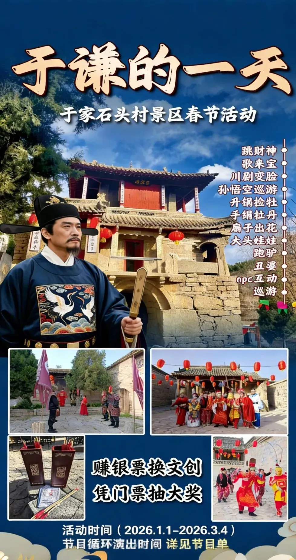 最后压轴登场的是——于家石头村,一个藏在太行山里的古村落,今年春节搞了个超有趣的活动:“于谦的一天”。