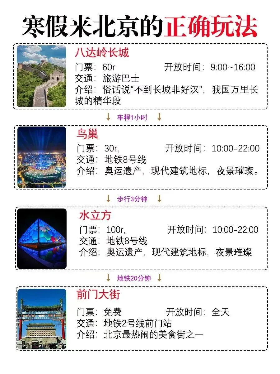 寒假来北京玩怕踩雷?这份攻略直接抄作业!。✨来北京的朋友,这份攻略赶紧码住!寒假、春节带孩子来北京玩,游玩顺序别搞反了,这份攻略希望对你们有帮助!
