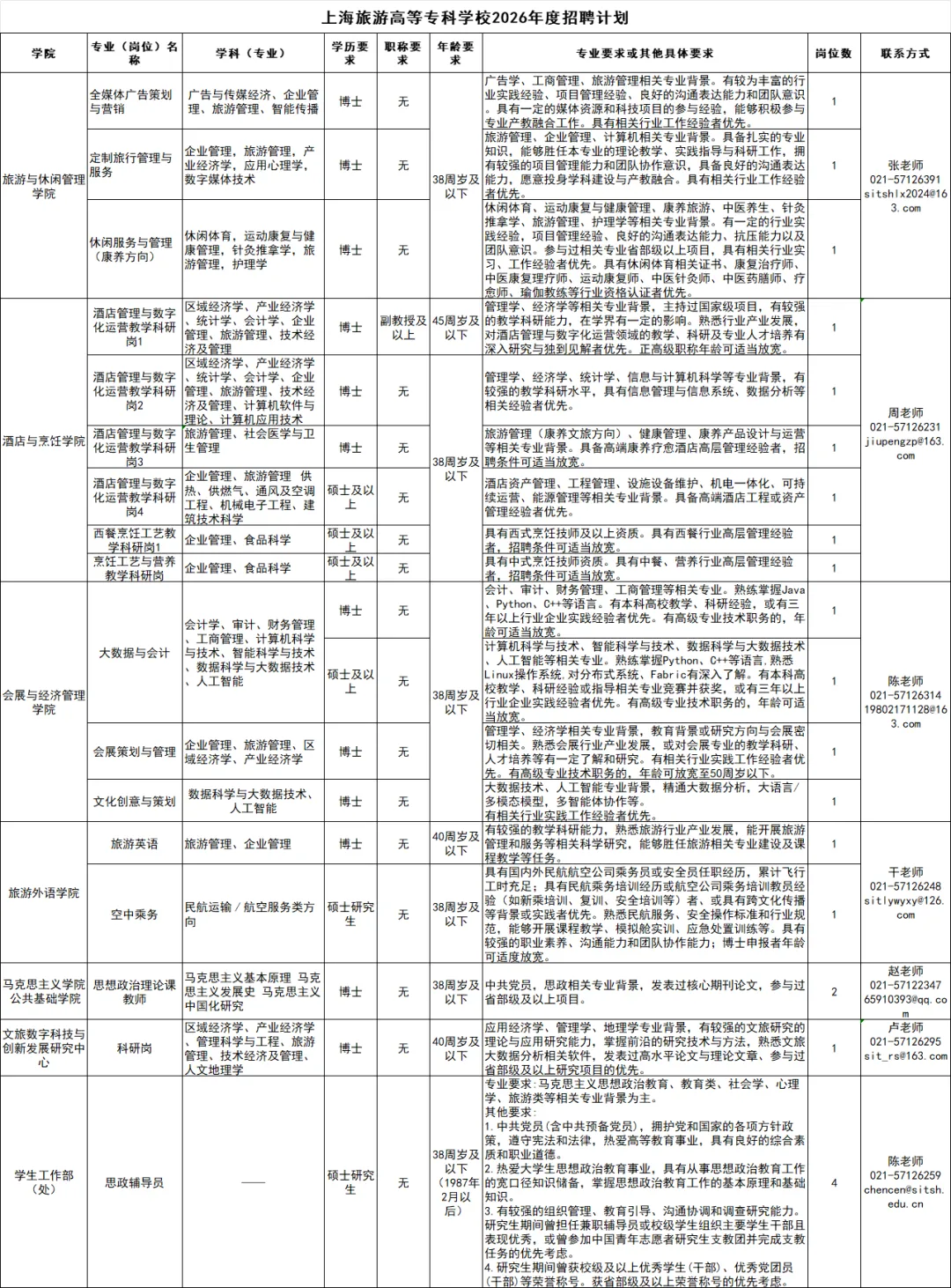 上海旅游高等专科学校、上海海洋大学招人!