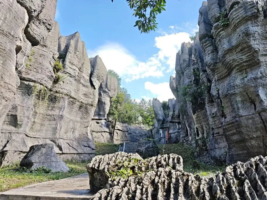龙鳞石海景区位于重庆市万盛区石林镇,规划面积4.7平方公里,距城区20公里,2012年与黑山谷联合获批国家AAAAA级旅游景区,成为重庆市第五家国家5A级景区。该景区形成于距今4.65-6亿年的奥陶纪海洋沉积环境,是中国最古老的石林地貌,地表岩石多具鳞片状纹理,故得名“龙鳞石海”。