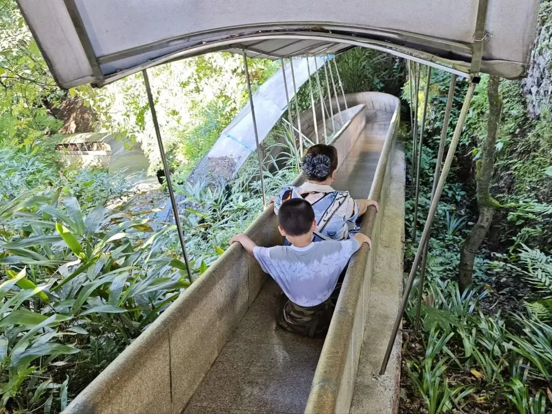 这个石滑梯确实是我第一次见到,非常的陡峭,线路不是很长。