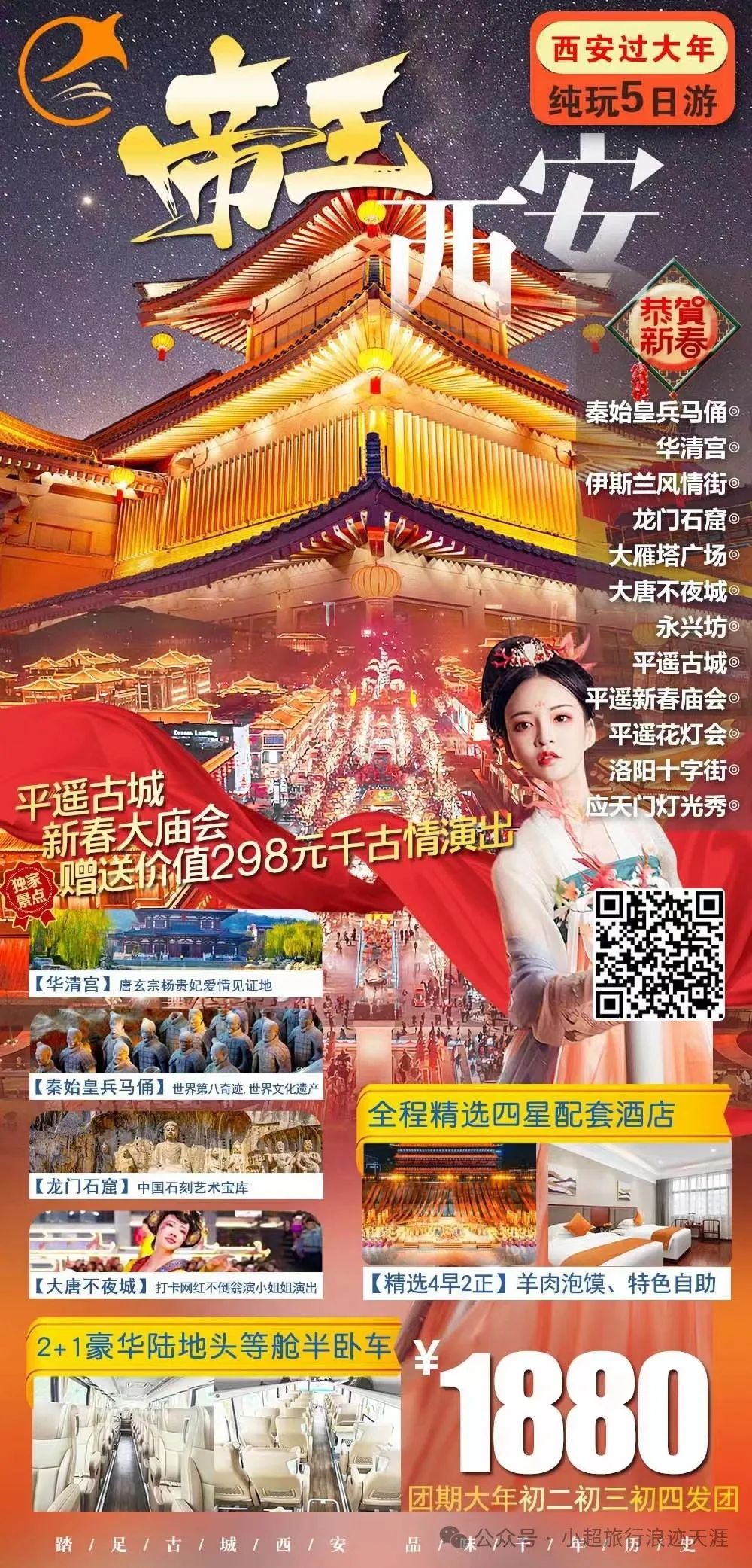 2、【帝王西安过大年】西安兵马俑、华清池、龙门石窟、平遥古城、大唐不夜城纯玩五日游 2月16/17号发团