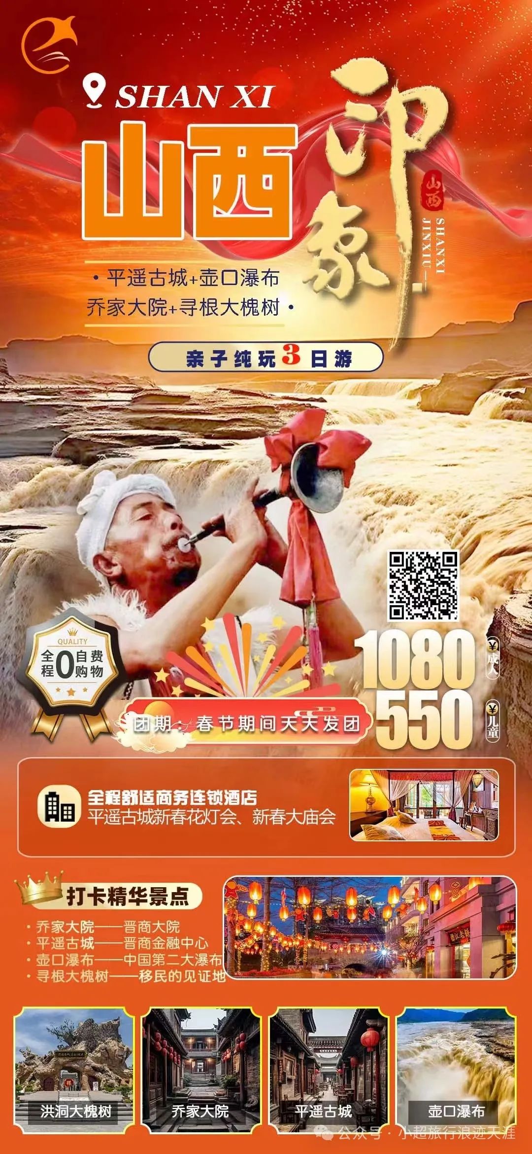 14、我去山西过龘年—印象山西平遥古城、乔家大院、壶口瀑布、寻根大槐树纯玩亲子三日游