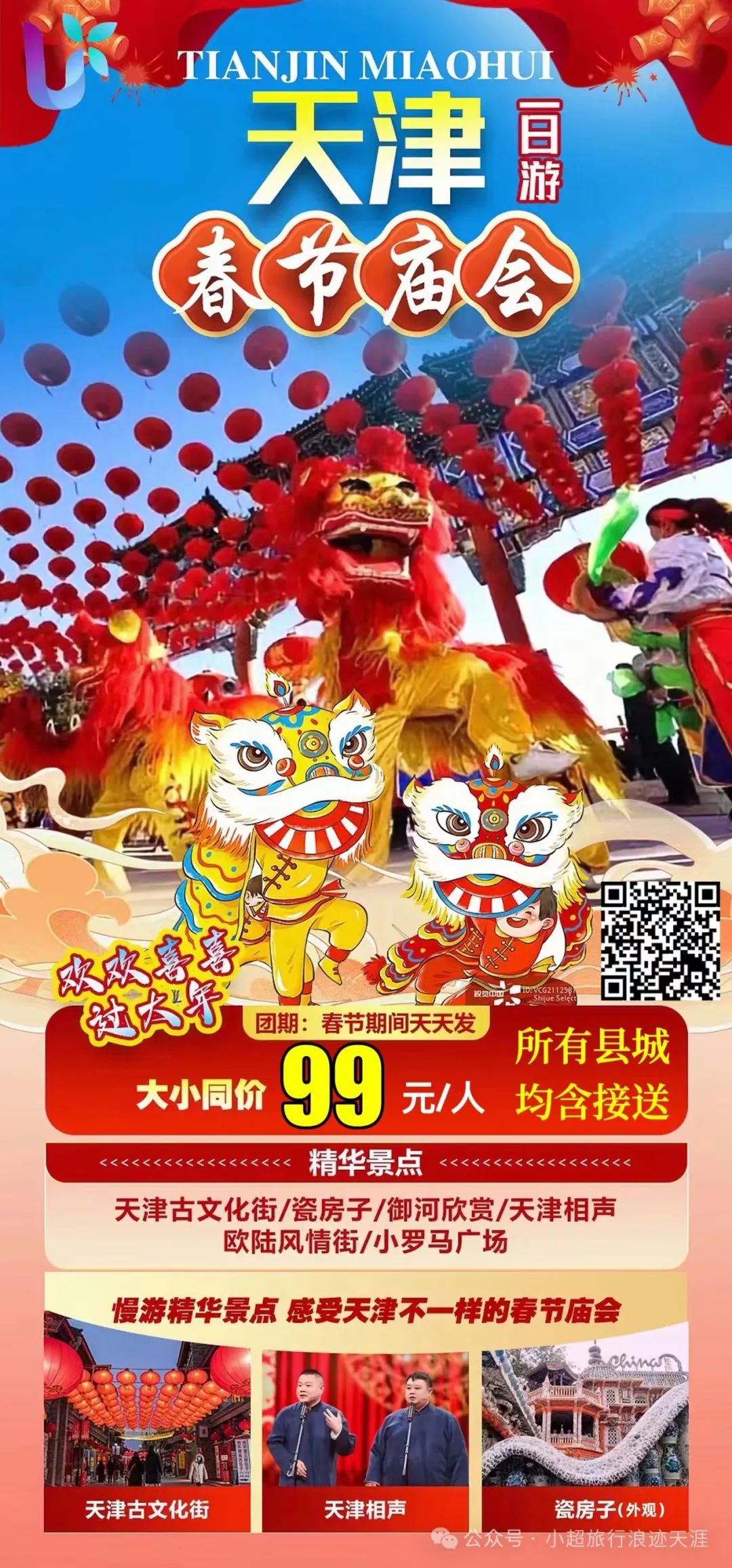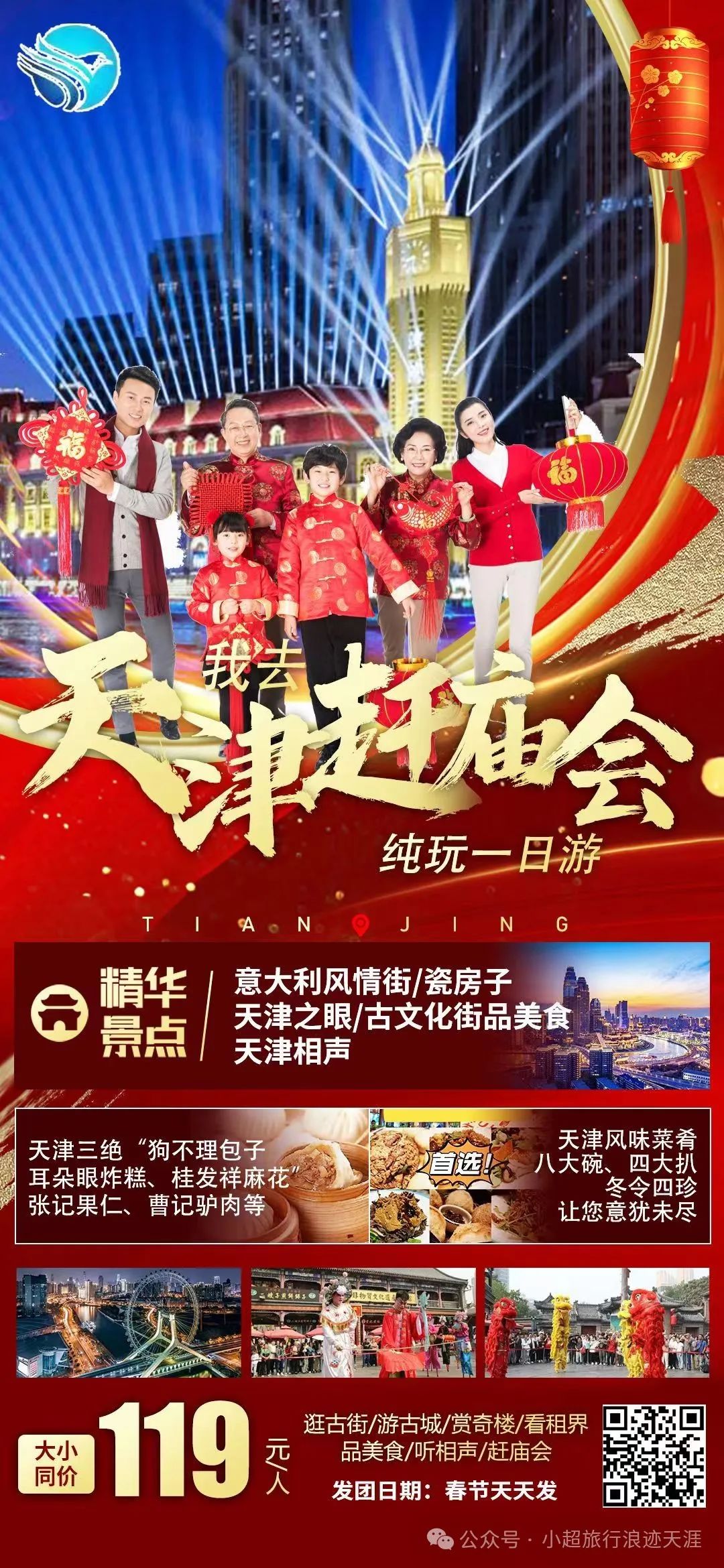 1、我去天津过大年意大利风情街+瓷房子+天津之眼+古文化街品美食+天津相声纯玩一日游 2月14号发团
