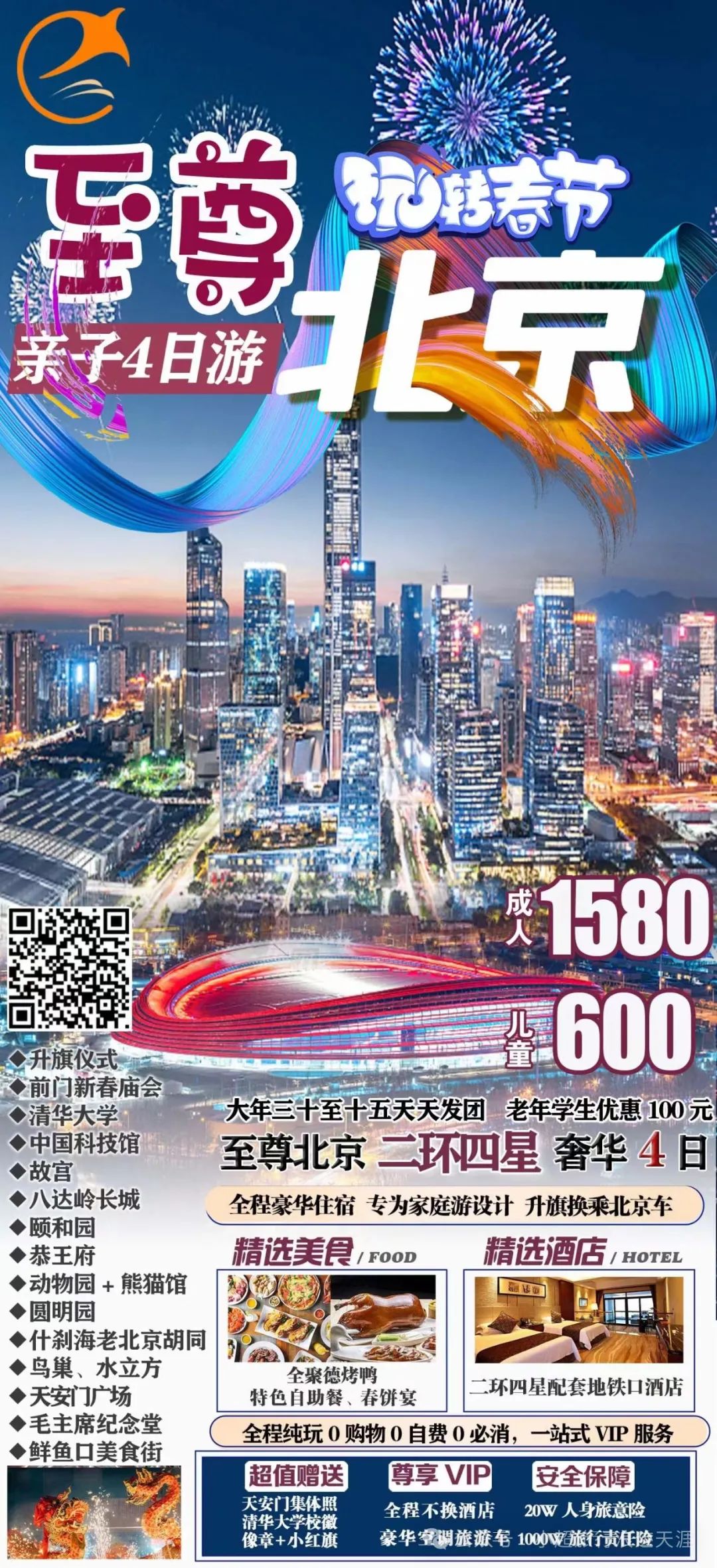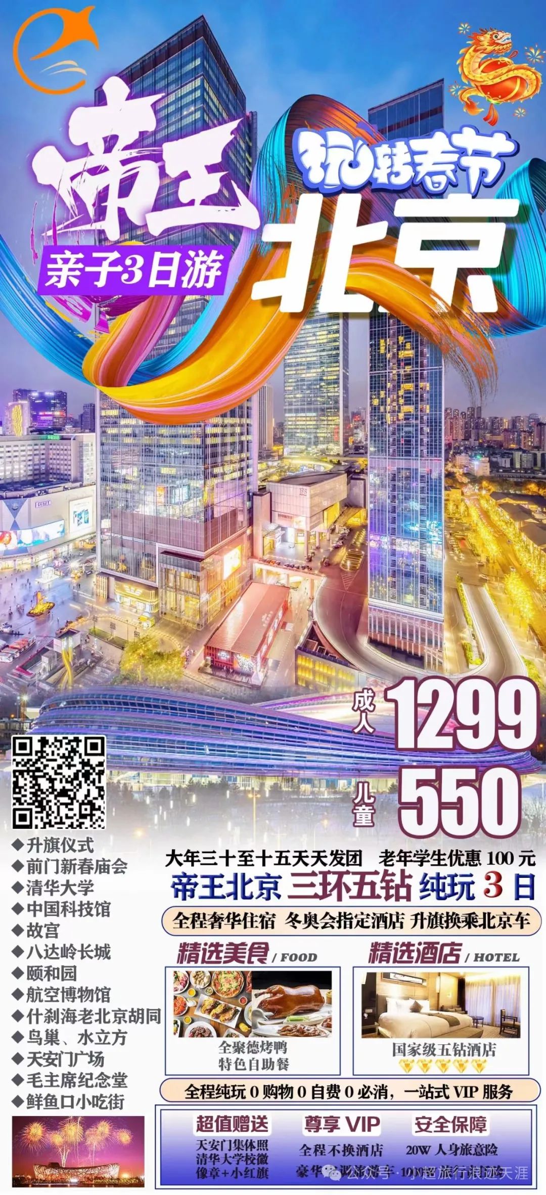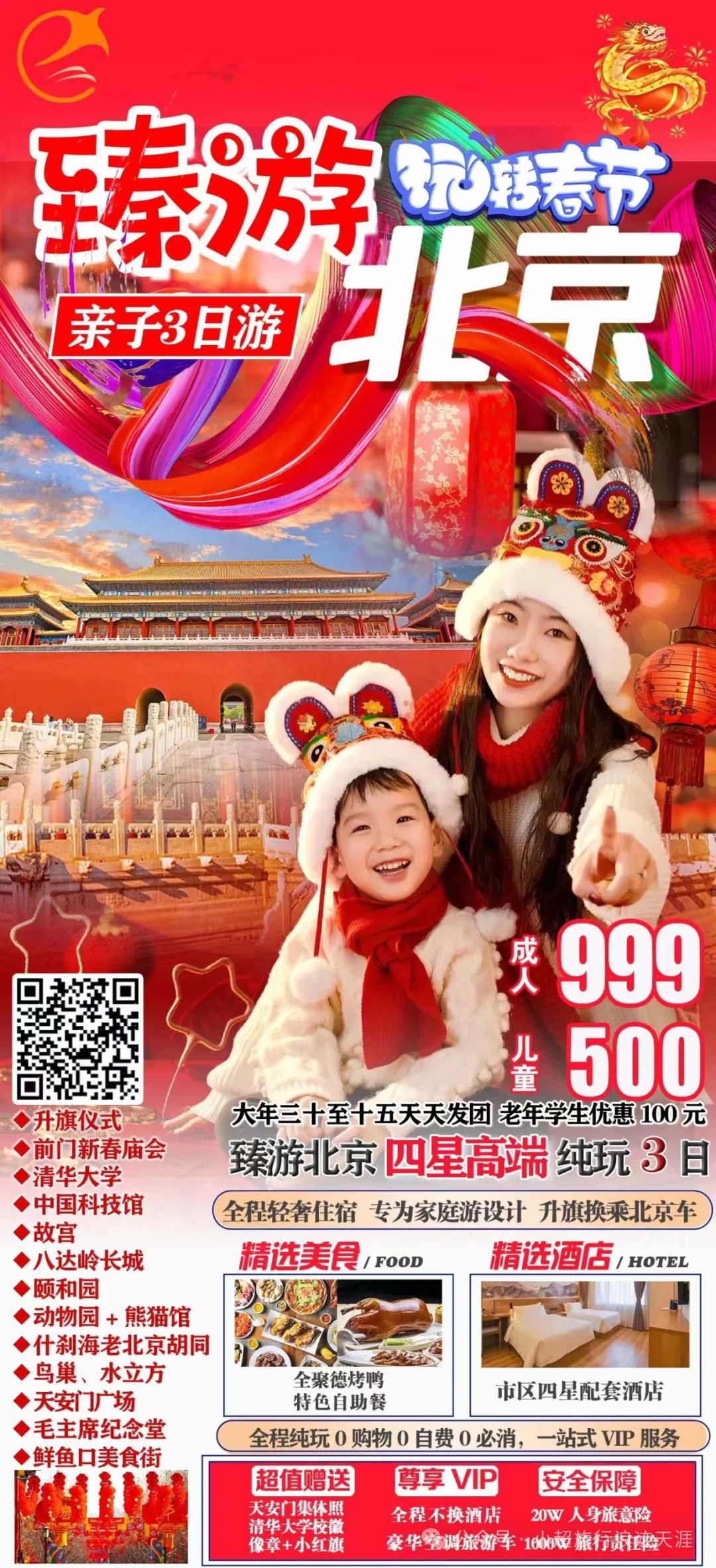 8、我去北京过龘年—尊游北京二环四星亲子纯玩三日游 2月13/14/15号发团(60周岁以上老年人和18周岁以下学生立减100元)