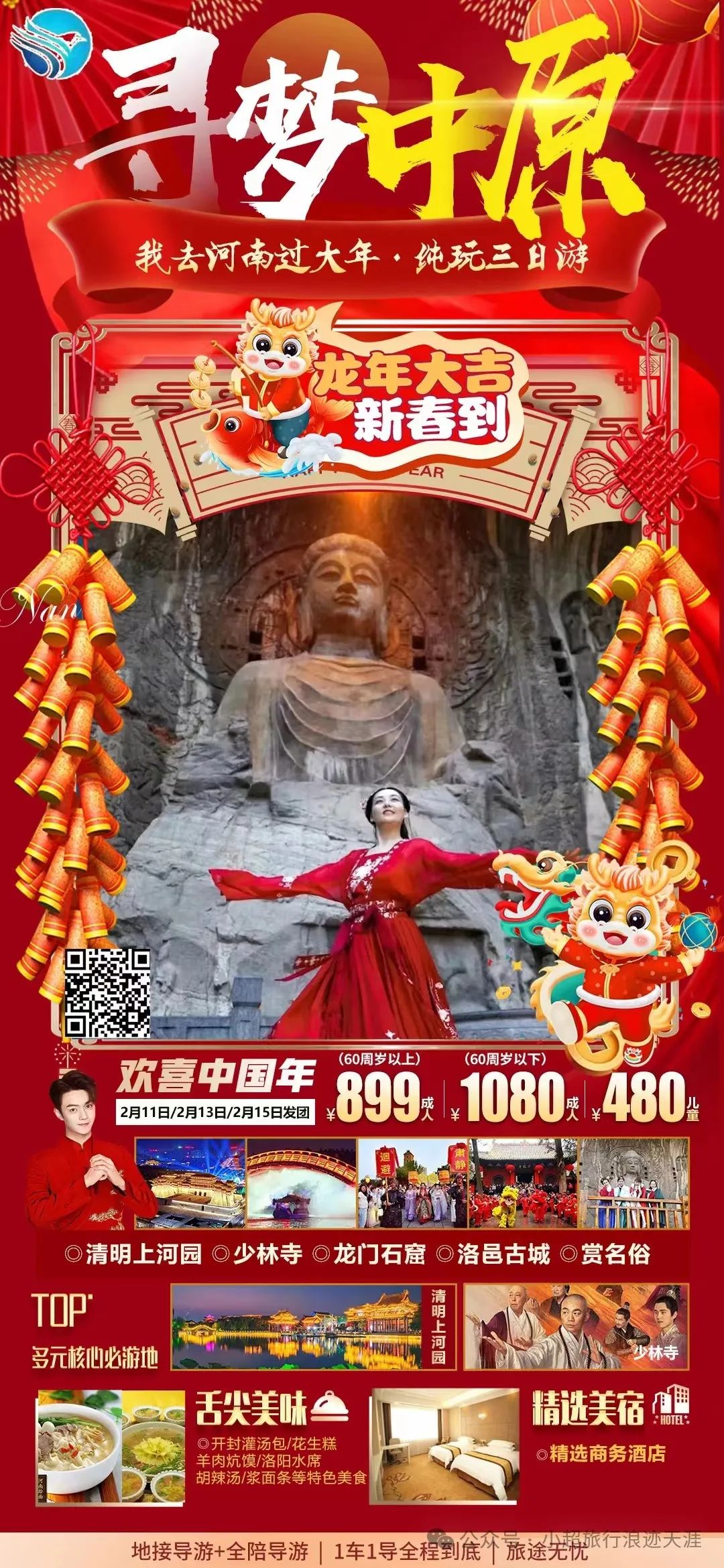 4、我去河南过大年【寻梦中原】清明上河园+少林寺+洛阳龙门石窟+洛邑古城+赏名俗+品美食纯玩三日游 2月11号发团