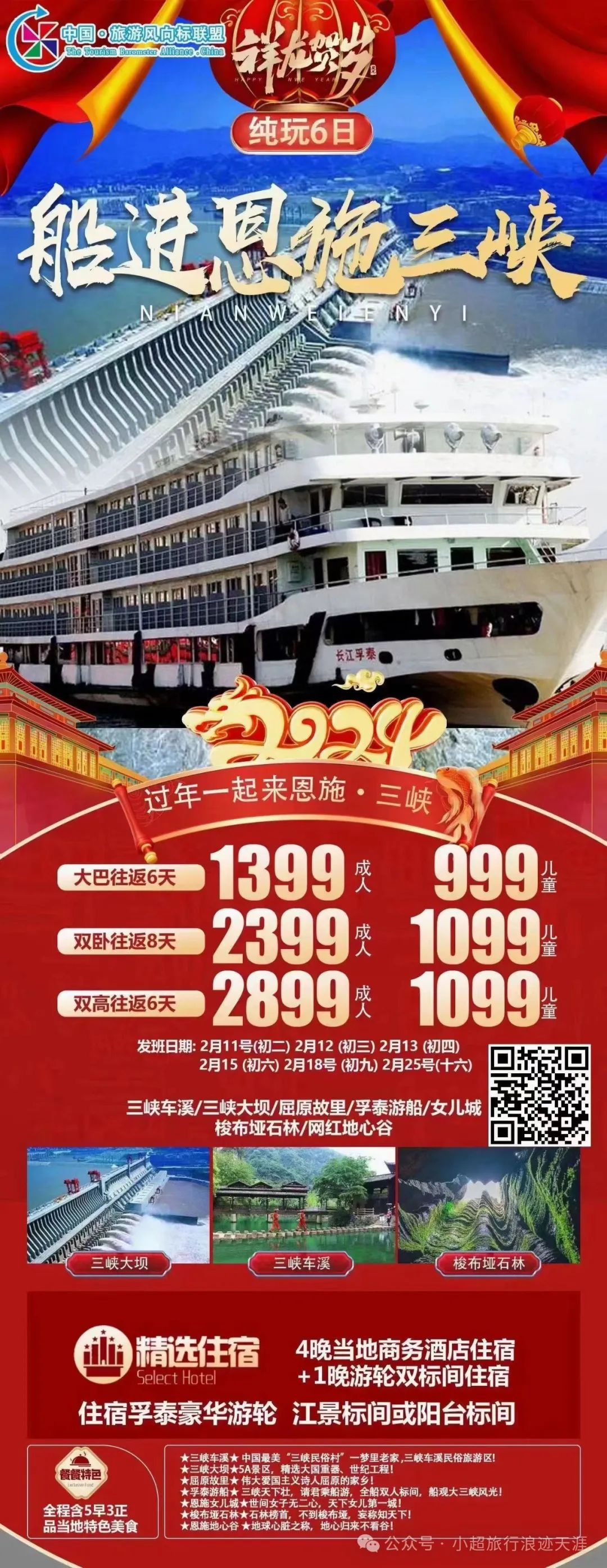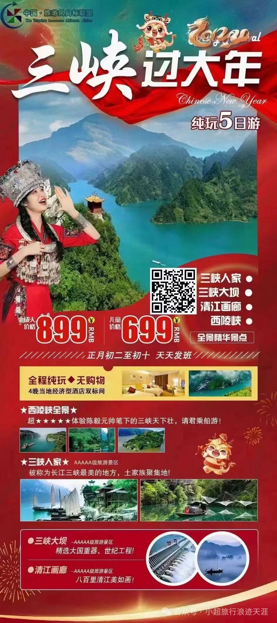 4、【三峡过大年】三峡人家+三峡大坝+清江画廊+西陵峡全景精华景点纯玩五日游 2月12/19号发团
