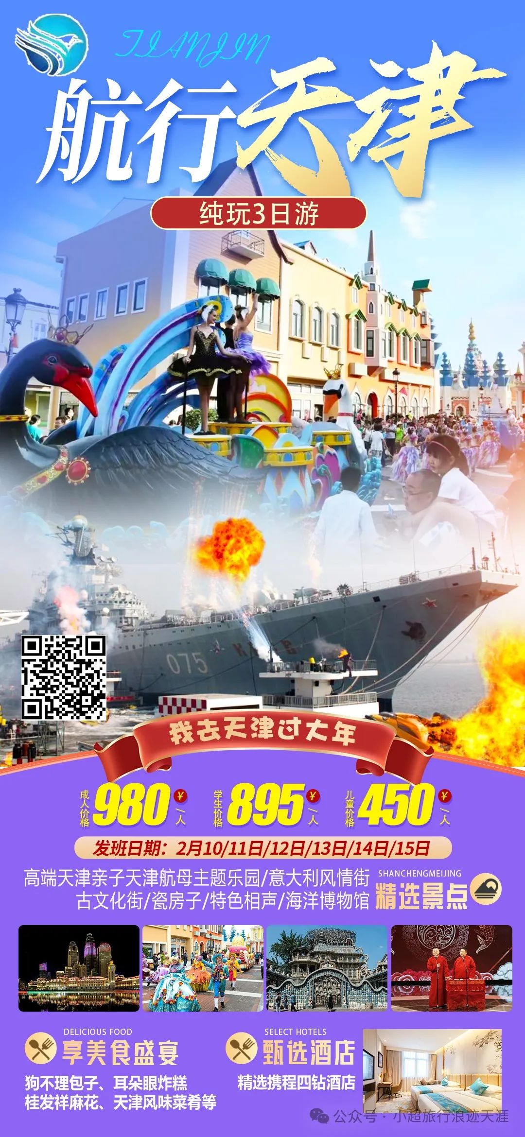 7、“我去天津过大年”【天津航母主题公园】海河意式风情区+瓷房子+天津之眼+古文化街品美食+天津相声纯玩两日游 2月11/13/15号发团
