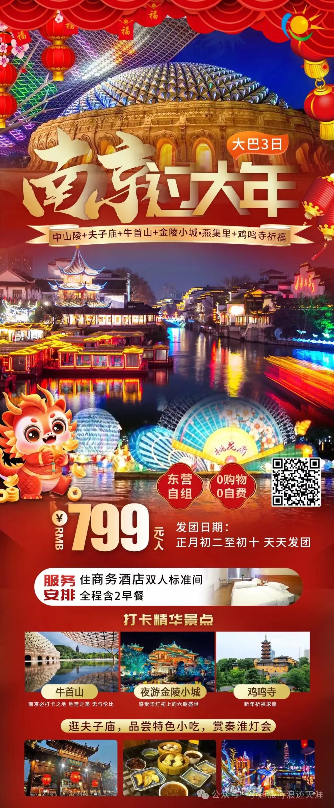 16、【南京过大年】中山陵+夫子庙+牛首山+金陵小城•燕集里+鸡鸣寺祈福大巴三日游 2月12号发团