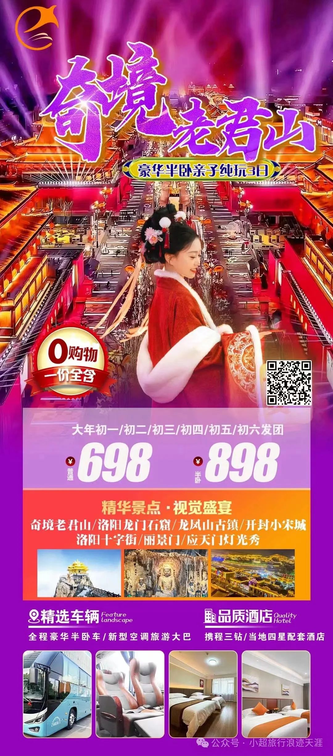 11、奇境老君山--老君山+龙门石窟+开封小宋城+丽景门+十字街+应天门+龙凤山古镇纯玩三日游 2月12/14/15号发团
