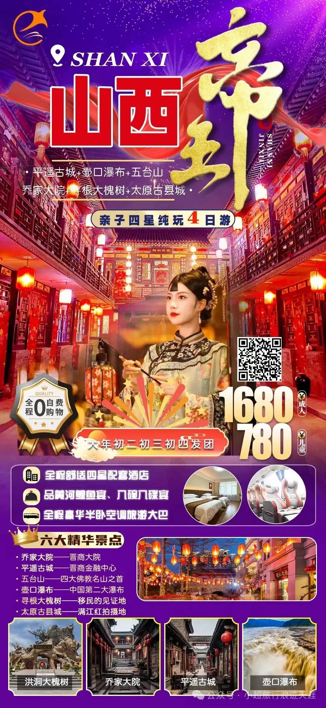 6、我去山西过龘年—帝王山西五台山、平遥古城、乔家大院、壶口瀑布、太原古县城、华门、寻根大槐树亲子纯玩四日游