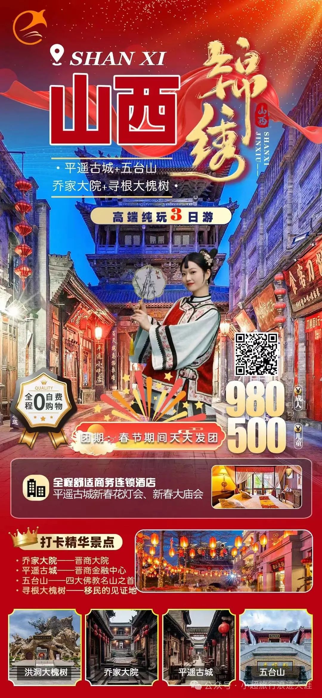 13、我去山西过龘年—锦绣山西平遥古城、乔家大院、五台山、寻根大槐树高端纯玩三日游