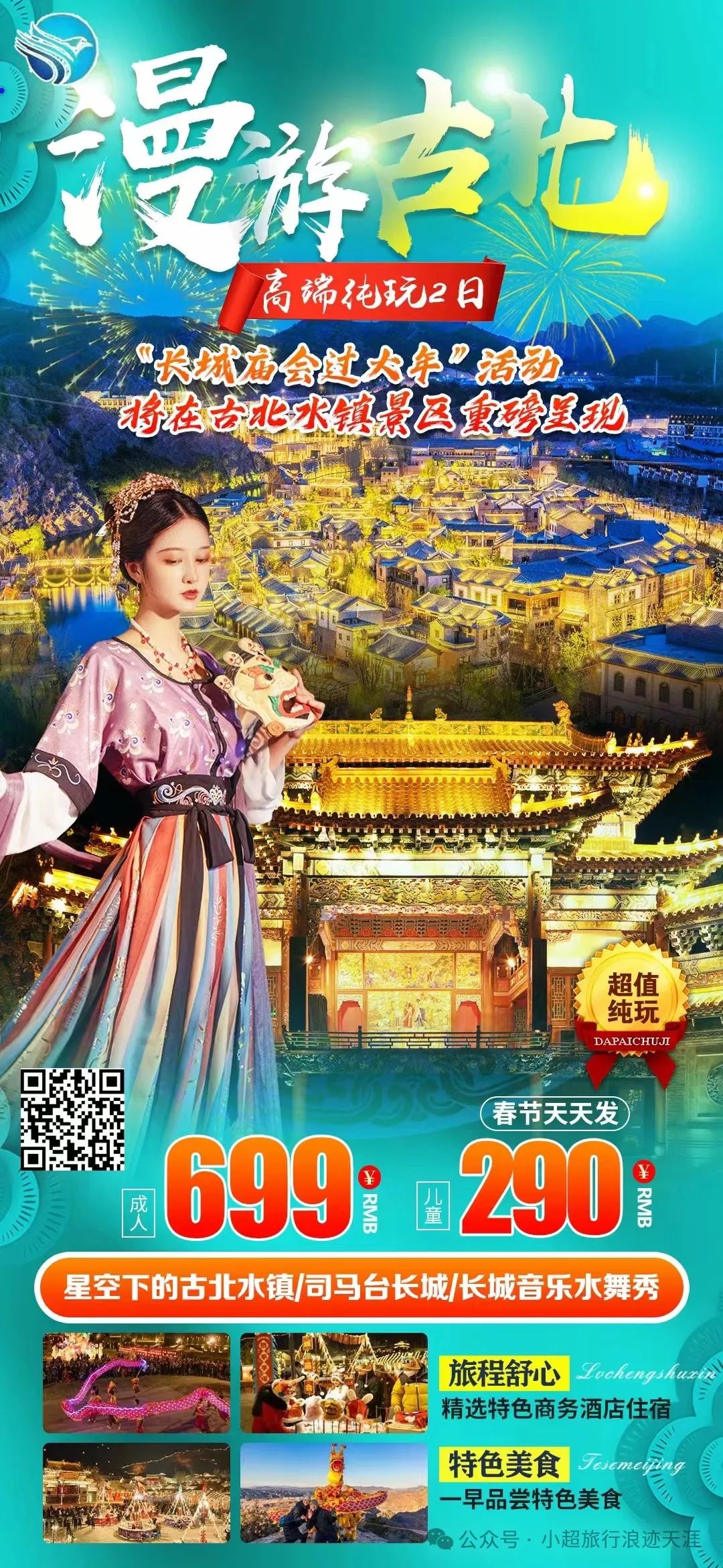 11、我去古北过大年【漫游古北】星空下的古北水镇+司马台长城+长城音乐水舞秀高端纯玩两日游 2月14号发团