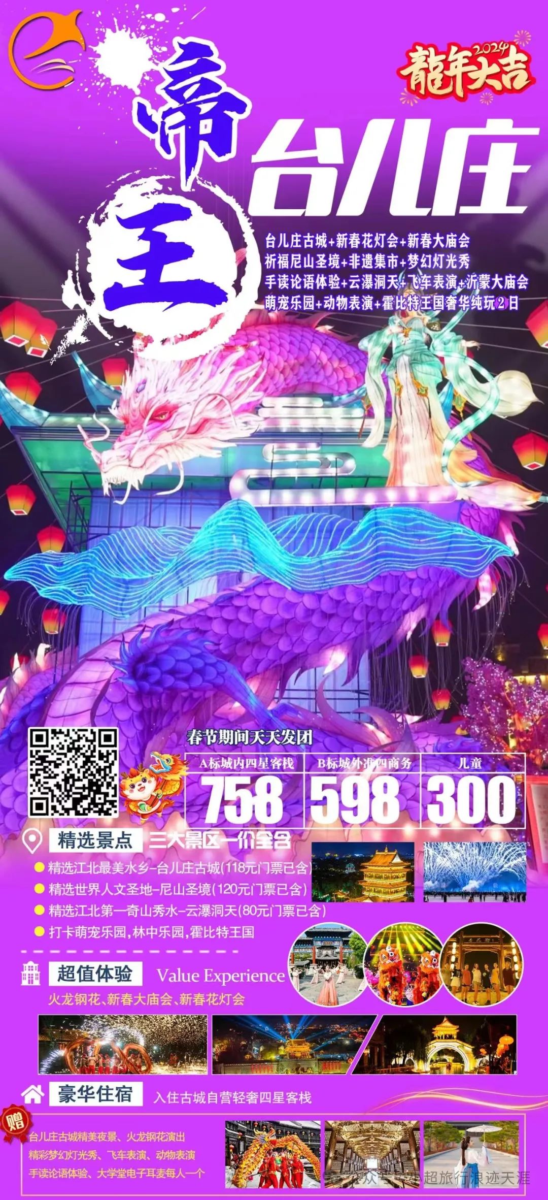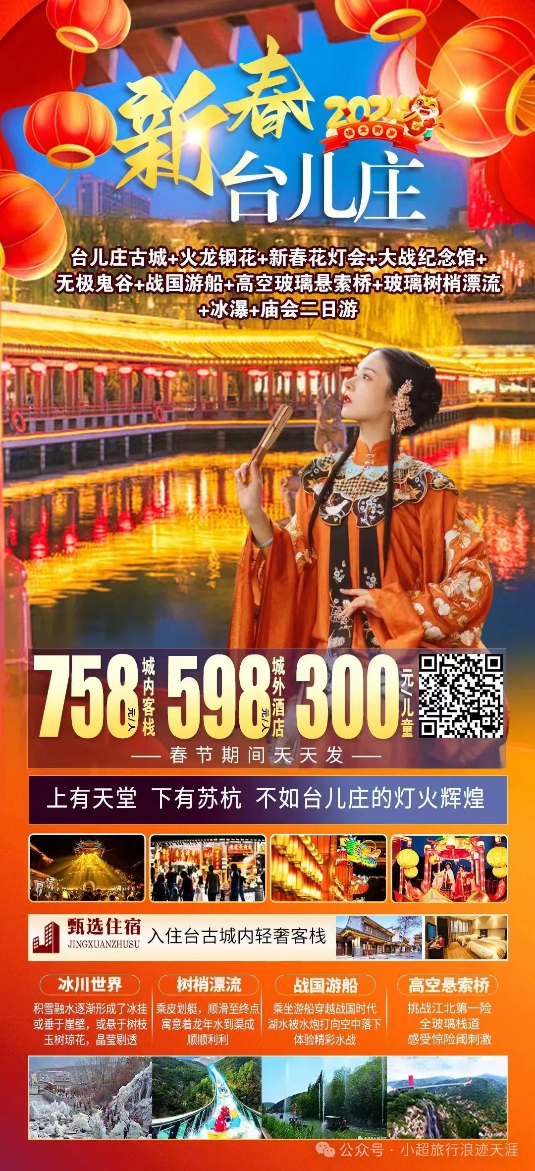 12、我去台儿庄过龘年-帝王台儿庄古城+璀璨夜景+新年花灯+尼山+梦幻灯光秀+云瀑洞天+探秘通天峡高端纯玩两日游 2月11/13号发团