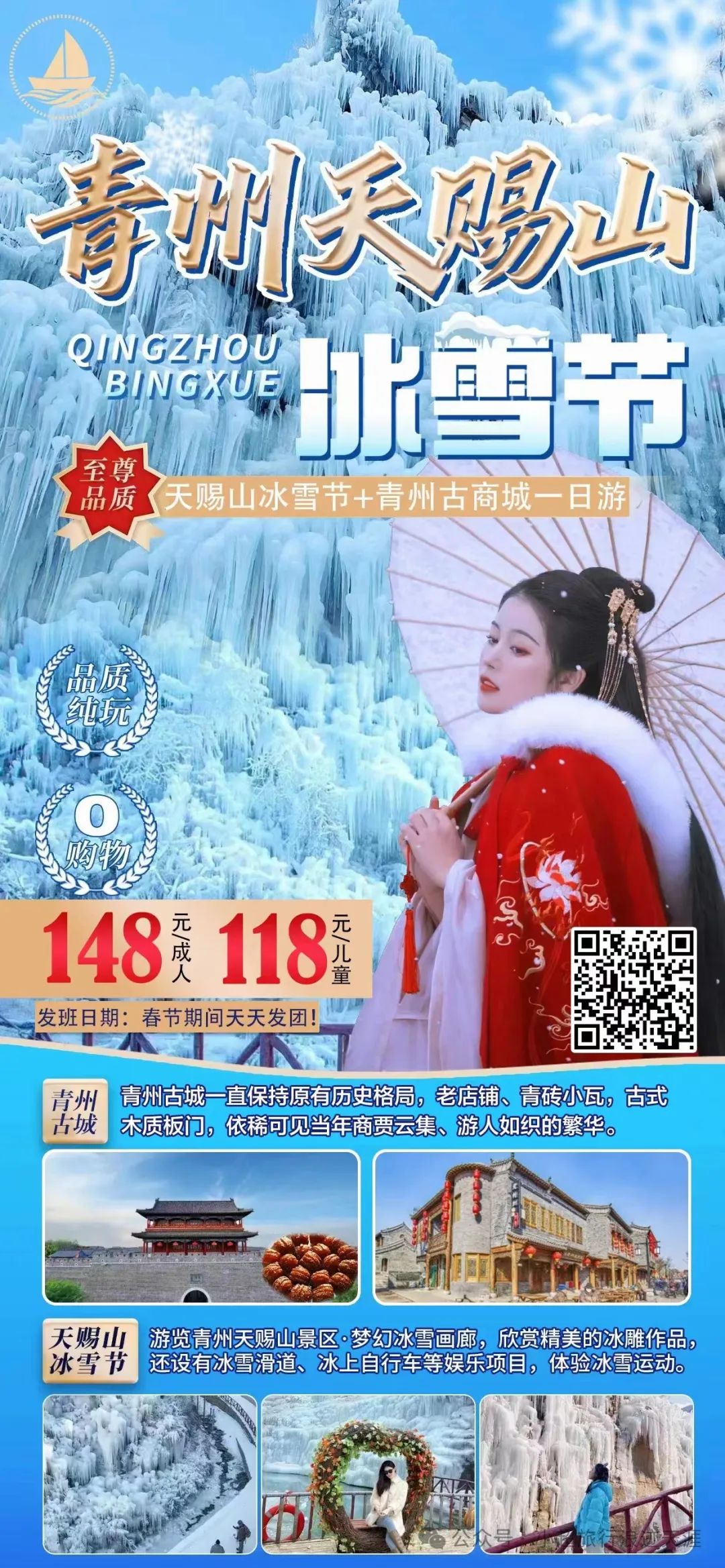 4、青州天赐山冰雪节、青州古城一日游 春节期间天天发团