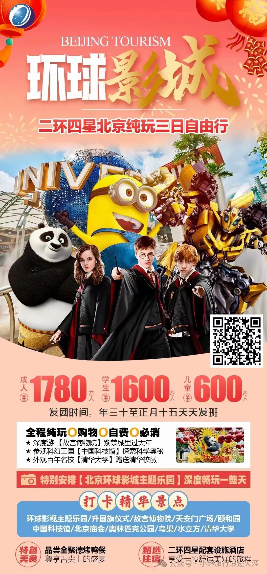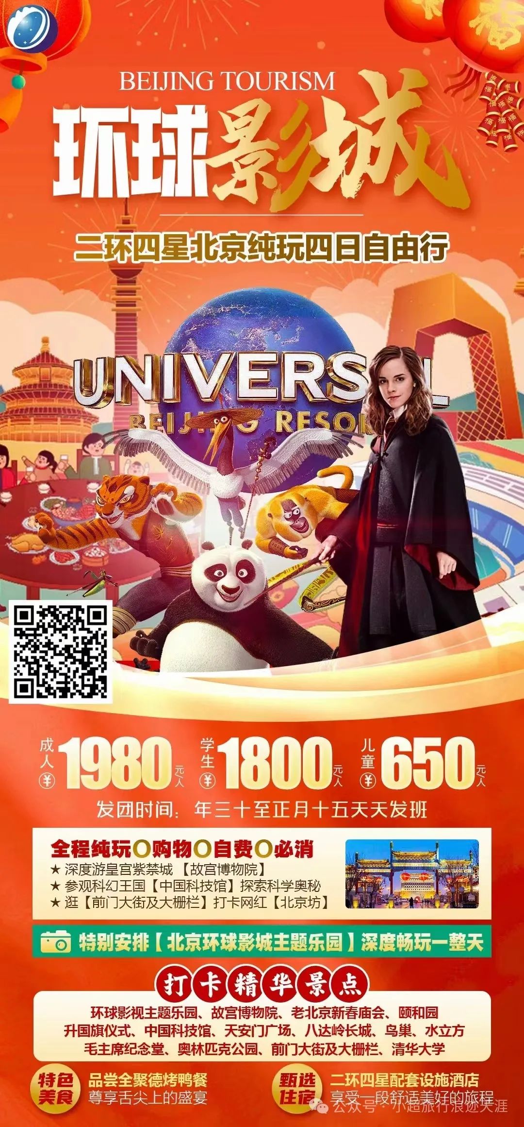 4、环球影城二环四星北京纯玩四日自由行 2月13/14/15/16号发团