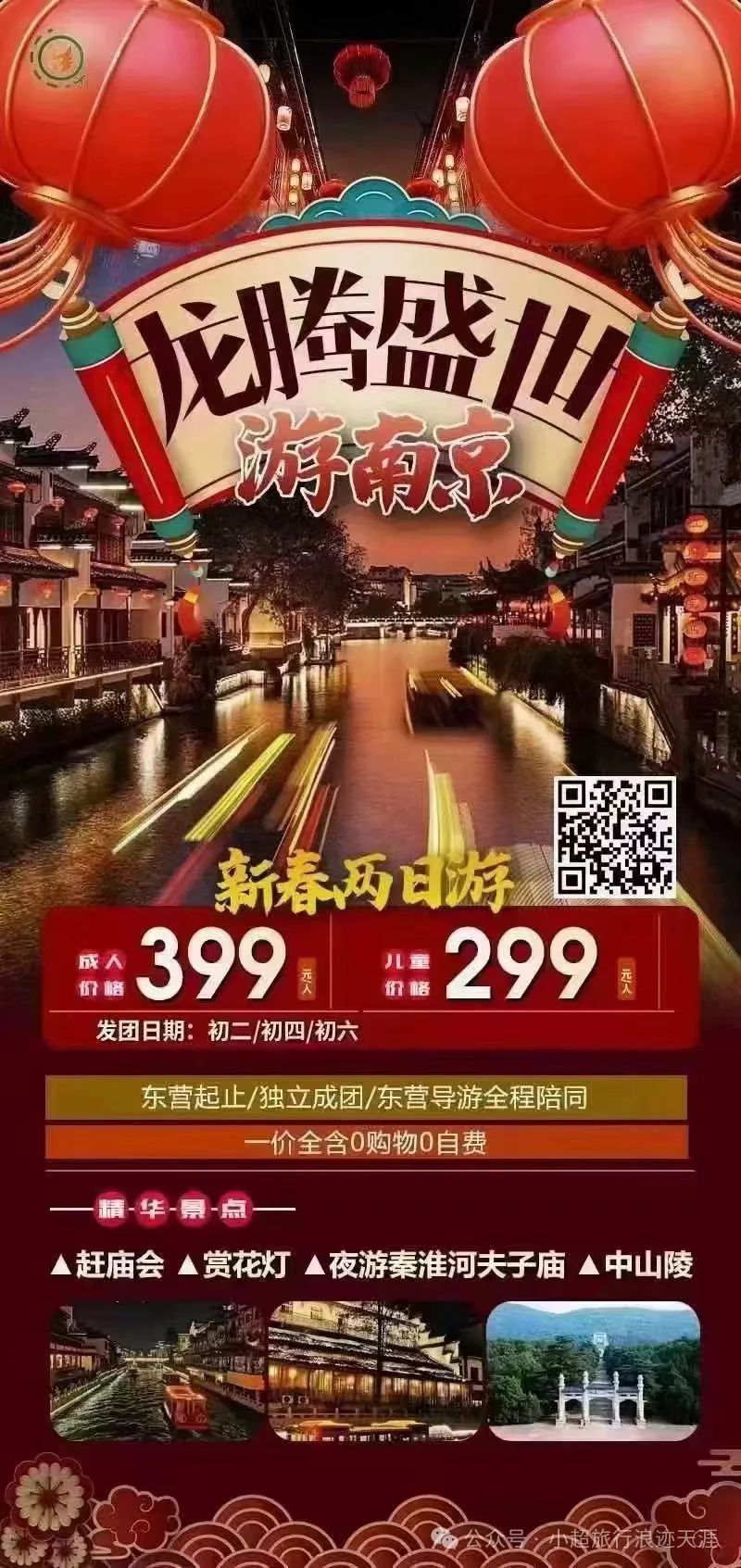 17、【龙腾盛世游南京】赶庙会+赏花灯+夜游秦淮河夫子庙+中山陵新春两日游 2月11号发团