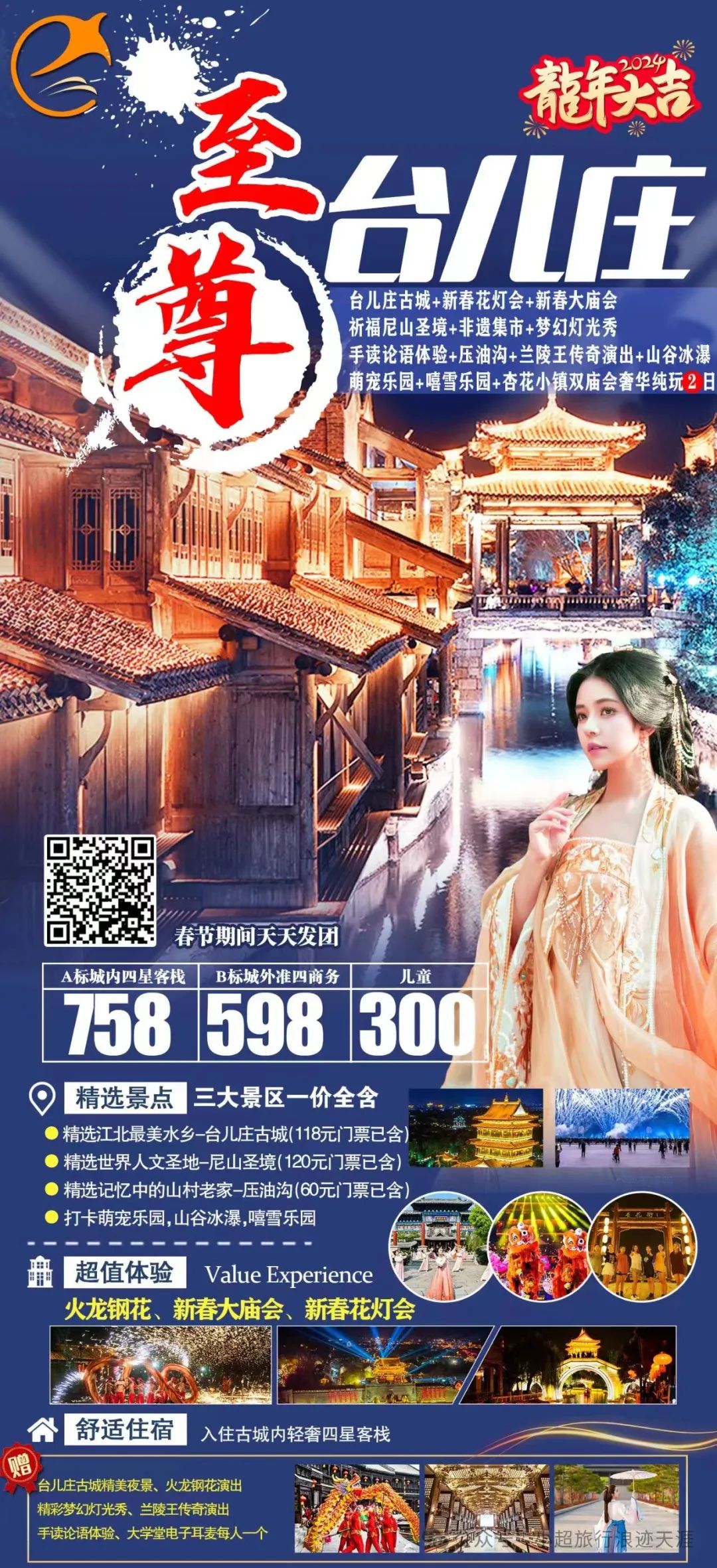 13、我去台儿庄过龘年-至尊台儿庄古城+璀璨夜景+新年花灯+尼山圣境+梦幻灯光秀+压油沟+杏花小吃街奢华纯玩两日游 2月12/14号发团