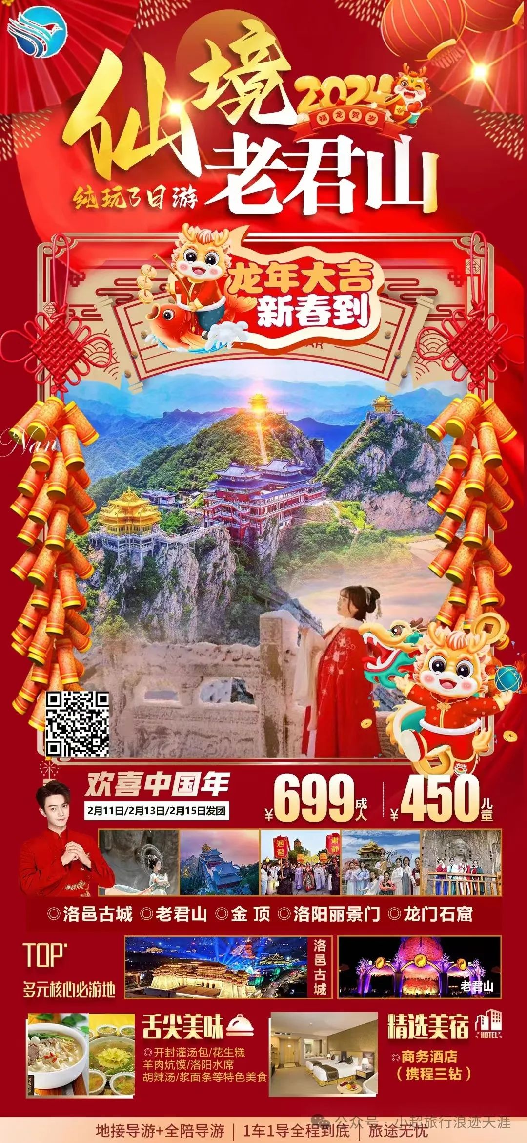 6、我去河南过大年【仙境老君山】金顶.留念+世界遗产.四大石窟之一龙门石窟神秘+中原渡口洛邑古城纯玩三日游 2月13号发团