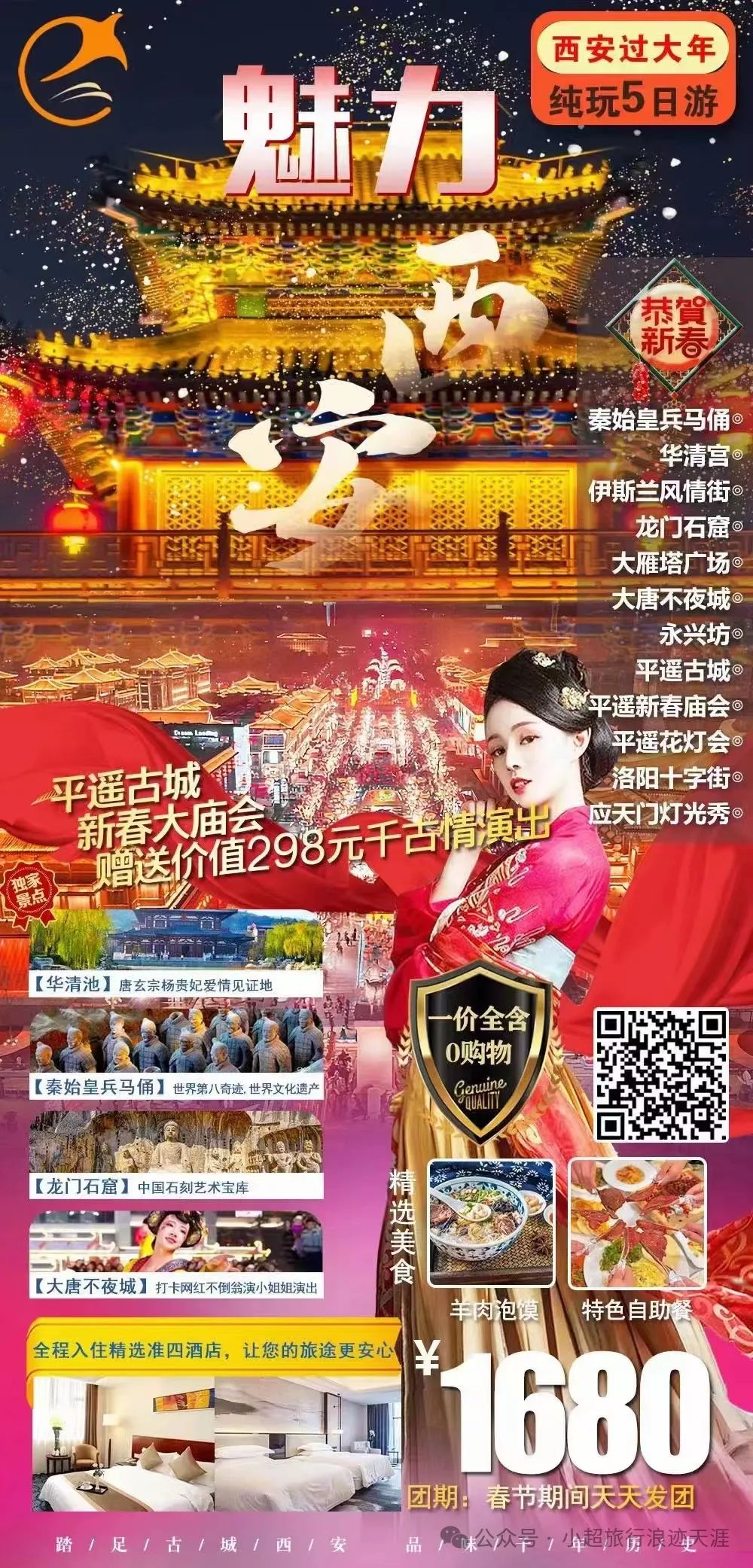 3、【魅力西安过大年】西安兵马俑、华清池、龙门石窟、平遥古城、大唐不夜城纯玩五日游 2月11/12/13/14/15号发团