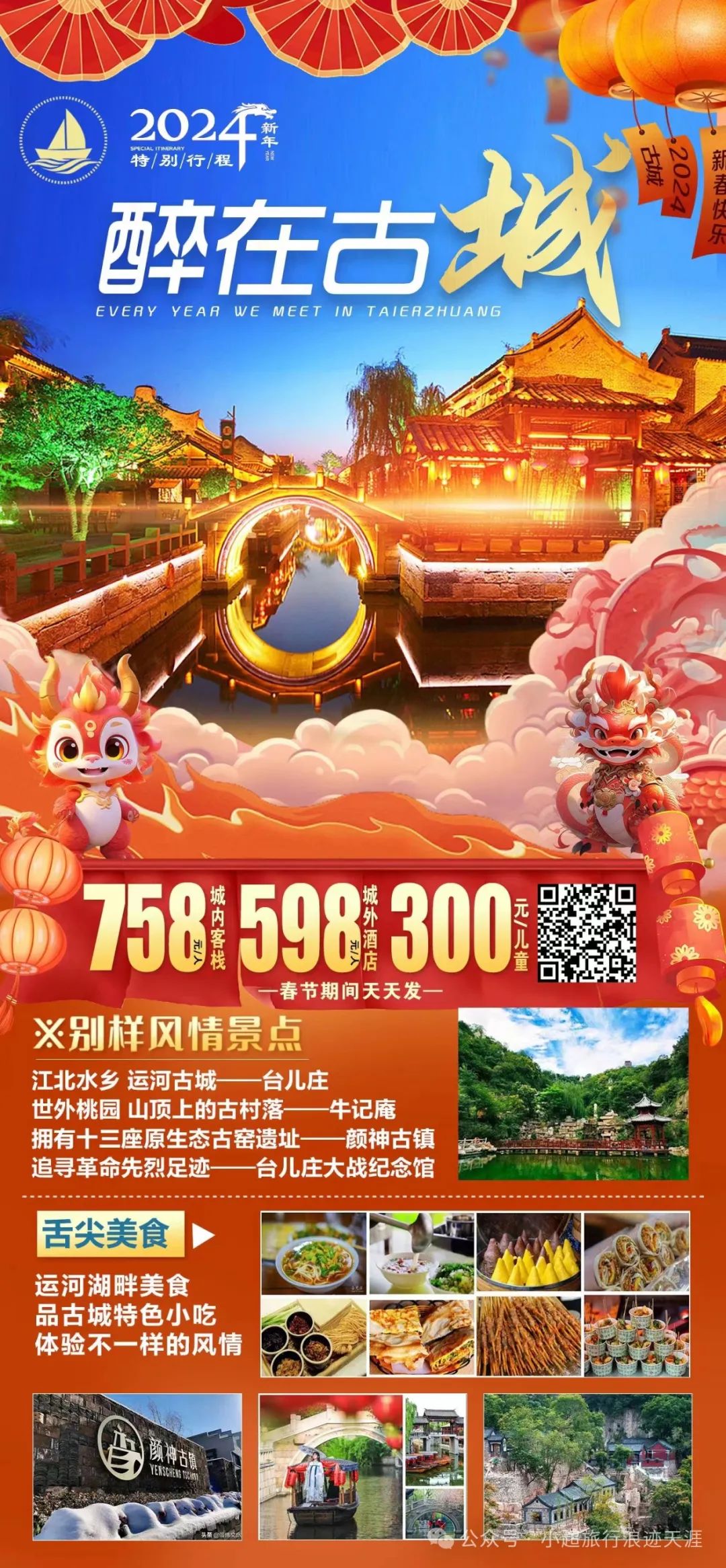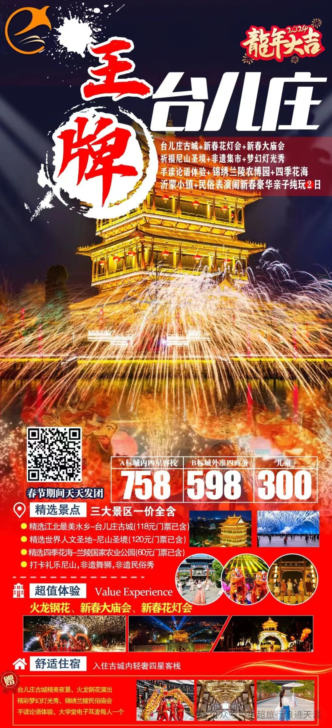 14、我去台儿庄过龘年—王牌台儿庄古城+璀璨夜景+渔灯巷+尼山圣境+梦幻灯光秀+兰陵农博园+纯玩两日游 2月12号发团