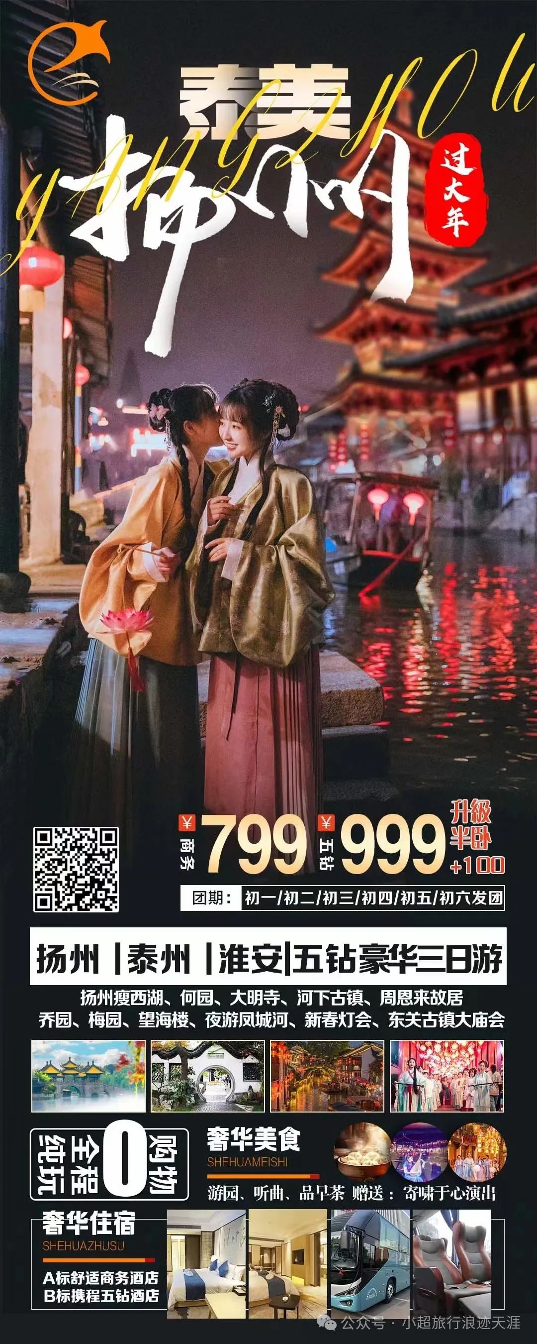 12、“泰美扬州”扬州、泰州、淮安五钻豪华三日游 2月11/12/13/14/15/16号发团