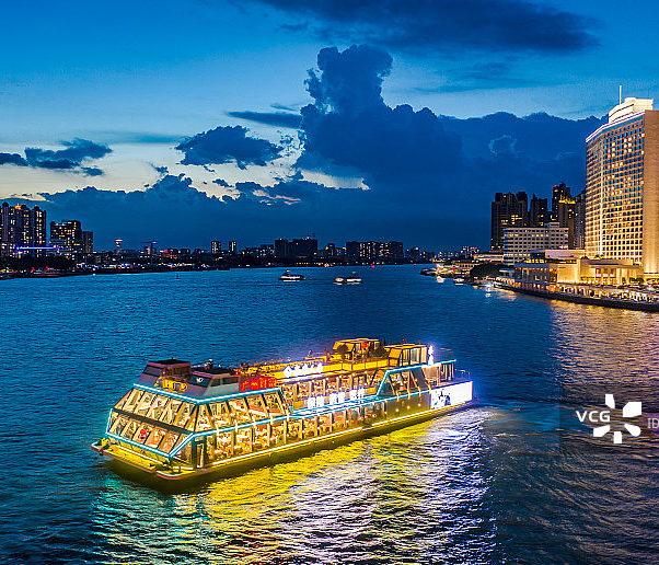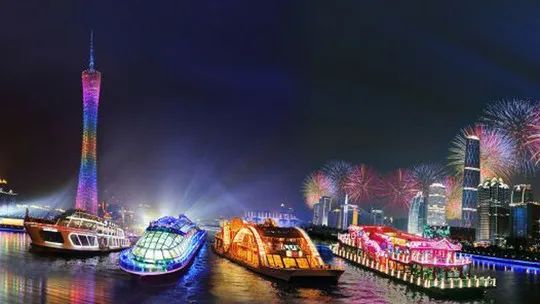 2、感受 大都市两岸灯火璀璨,船在江上行的唯美夜景【珠江夜游】。