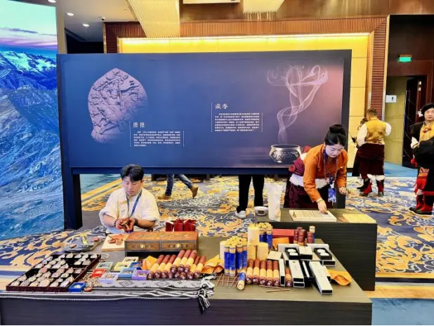 为使非遗“活”起来,现场设置了互动体验区。观众可以近距离观摩甚至亲手参与藏纸制作、雕版印刷、擦擦制作、藏香制作等工艺流程,在动手实践中感受非遗的独特魅力。