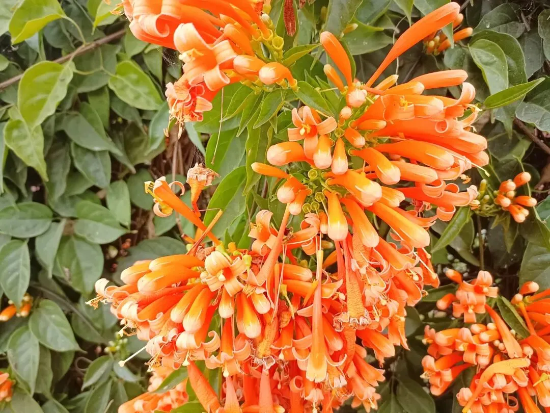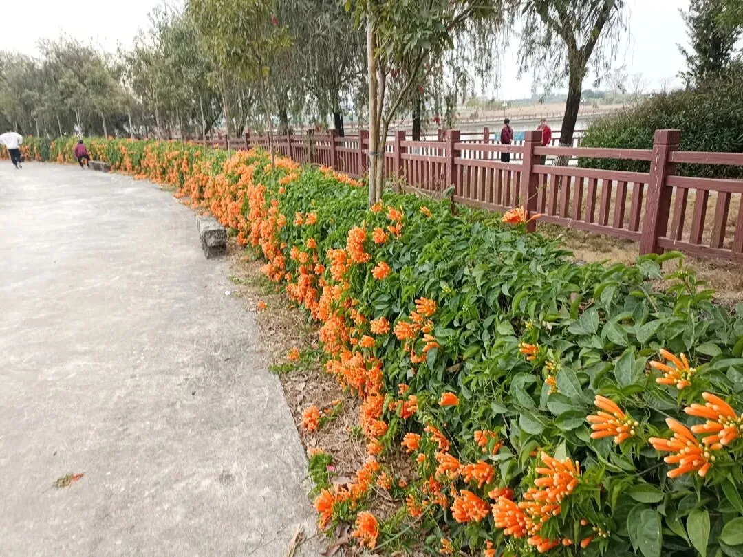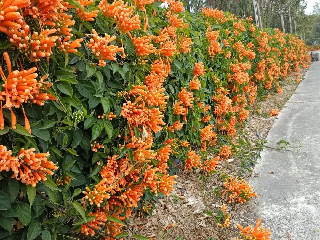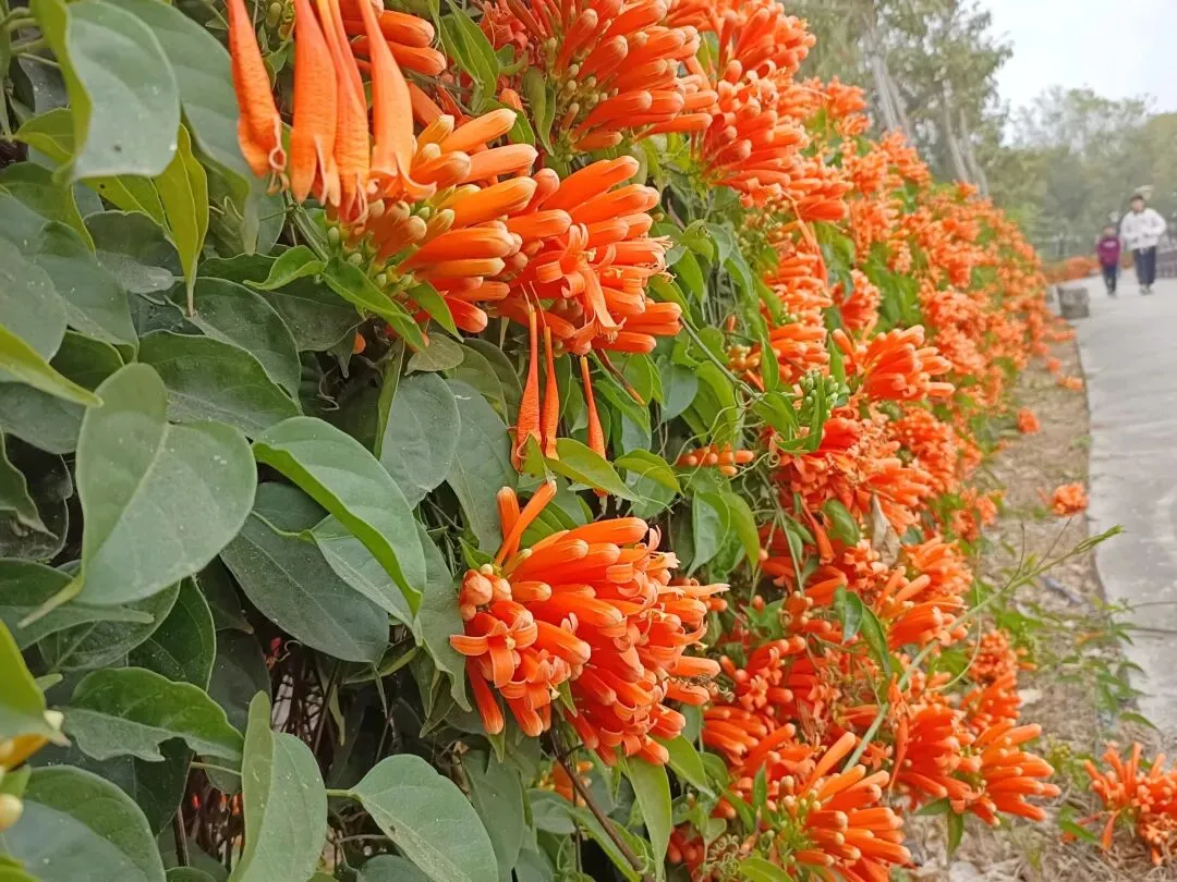我们继续往前走,不一会,就来到记忆中的那道,长长的“炮仗花之墙”。