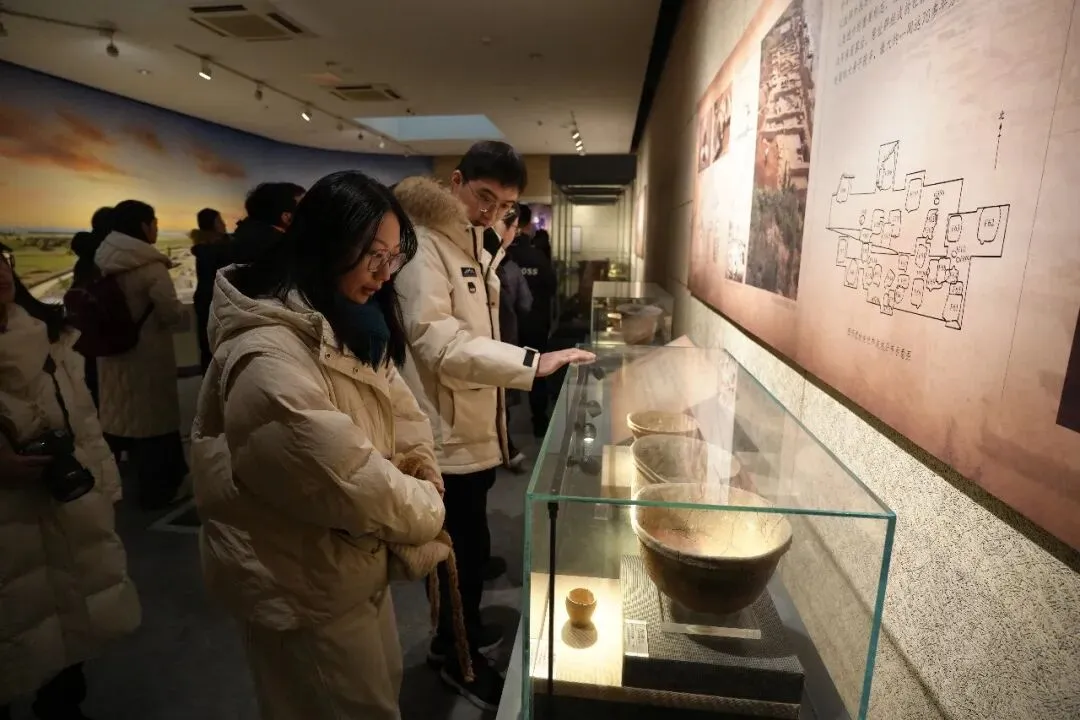 调研团队依次走访了大辛庄博物馆、洛庄汉王陵、平陵古城、城子崖国家考古遗址公园等多处历史文化遗迹。在大辛庄遗址博物馆,讲解员围绕遗址出土的商文化“第一类遗存”、岳石文化“第二类遗存”、甲骨卜辞、铸铜作坊以及铜鸮卣等文物展开系统讲解,深入阐释该遗址作为商王朝经略东方重要据点的战略意义。在洛庄汉王陵,师生通过观摩“中”字形墓葬结构与编钟编磬等出土乐器,加深了对墓主人身份、汉初礼乐制度及西汉诸侯丧葬制度的理解。在平陵古城,闫春新教授介绍了东平陵城自战国始建、汉代作为济南国都的历史,强调其作为汉代重要冶铁遗址的价值,同时讲述曹操任济南国相时的治政实践,以及王莽祖籍于此的历史渊源。在城子崖国家考古遗址公园,师生实地考察了龙山文化城、岳石文化城、周代城垣形成的“三城叠压”奇观,领略磨光黑陶的工艺价值,深刻感受该遗址在中华文明起源中的重要地位与史前文明的厚重底蕴。