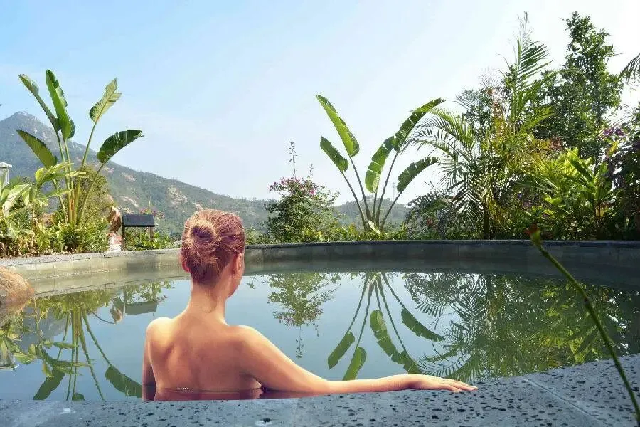 临窗而立,后面峰林秀美,缭绕云雾间,东南亚半山温泉隐匿绿荫葱郁其中,远近有景、处处入画;前面碧波潺湲,一线江景视野尽收眼底,不管是朦雾清晨还是日落黄昏时,都能领略四时景致。