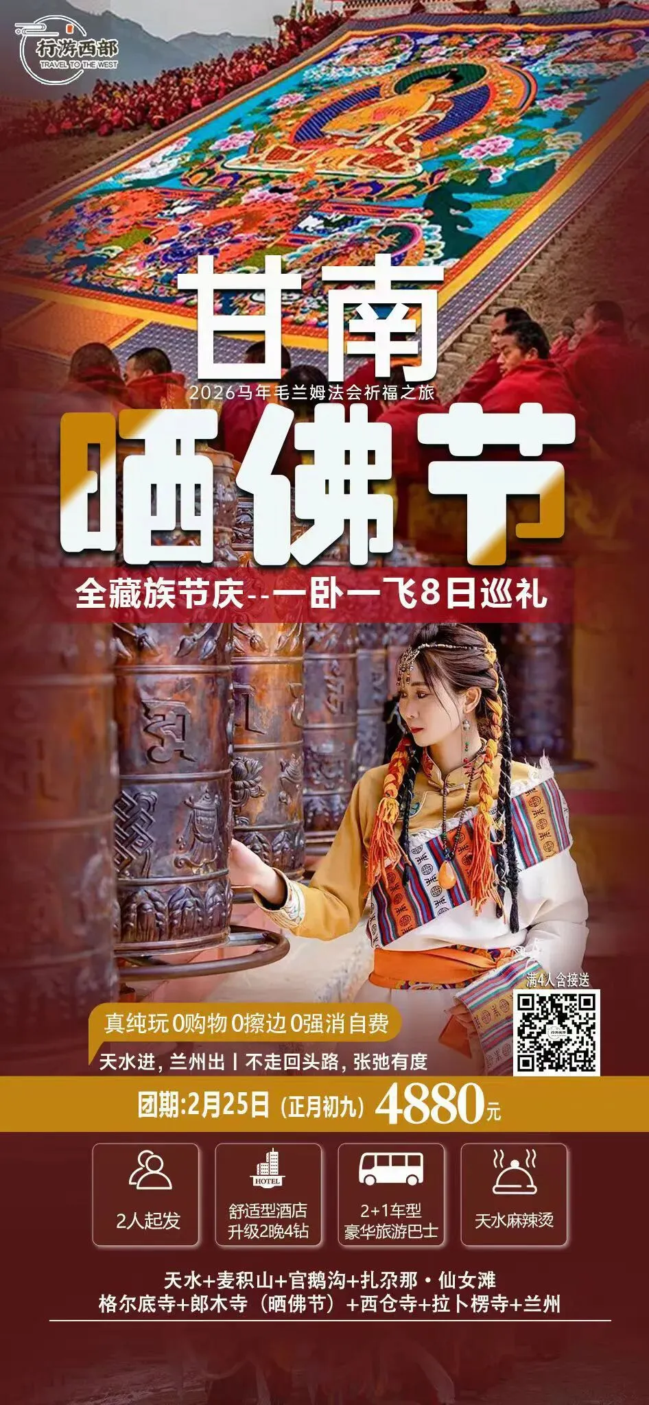 总要有一次背上行囊踏上行程 联系电话:15888678526 2026祈福之旅 《甘南晒佛节》8日游(一飞一卧)