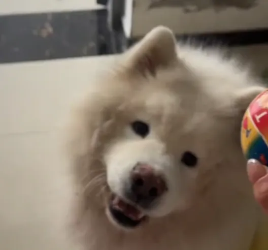 虽然如此,但是狗子还是很坚持的,好不容易把球给叼住了。