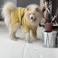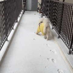 一开始走得还挺稳的,但是再多走几步路,狗子就开始脚底打滑了。